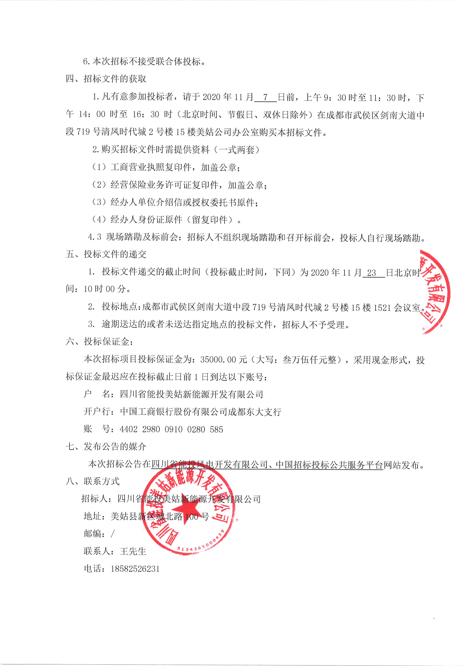 1.凡有意参加投标者,请于2020年11月 7 日前,上午9:30时至11:30时,下午14:00时至 16:30 时(北京时间、节假日、双休日除外)在成都市武侯区剑南大道中段719号清凤时代城2号楼15楼美姑公司办公室购买本招标文件。