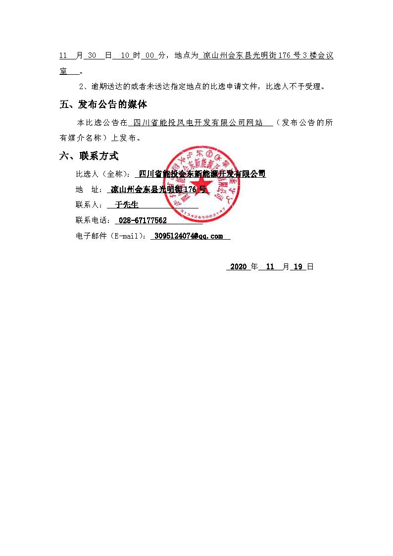 比选人(全称): 四川省能投会东新能源开发有限公司