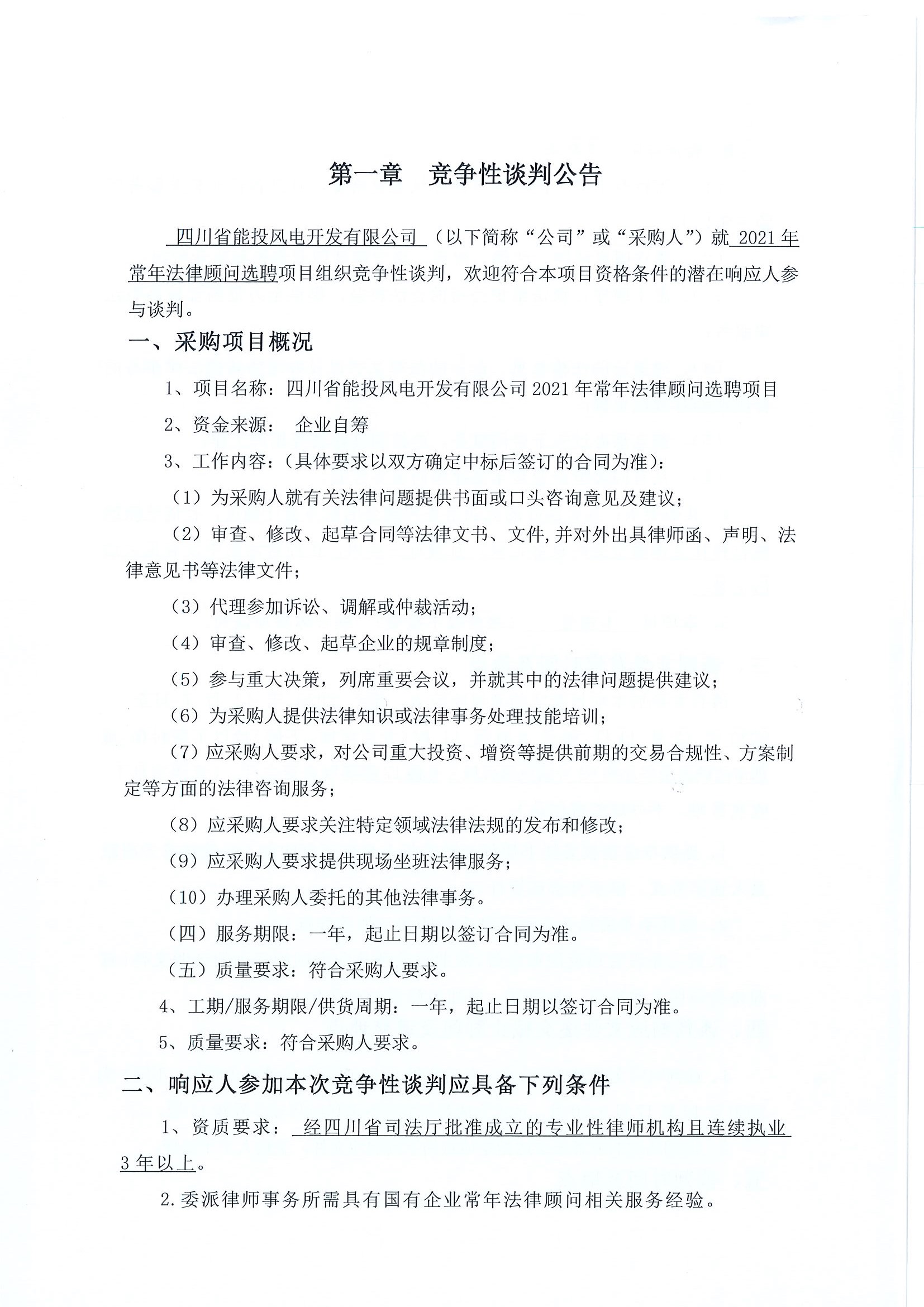 本谈判公告在四川省能源投资集团有限责任公司门户网站(www.scnyw.com)上发布。