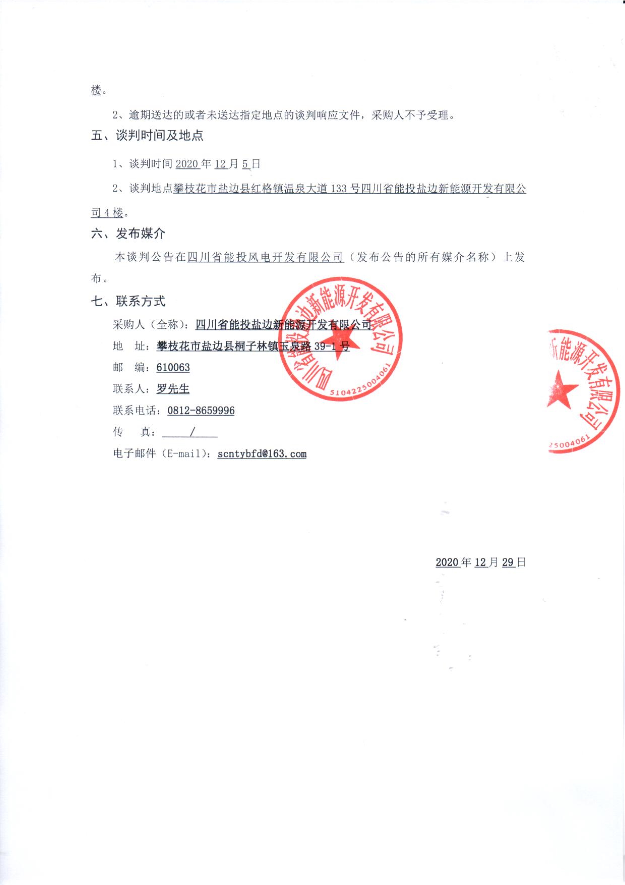 2、谈判地点攀枝花市盐边县红格镇温泉大道133号四川省能投盐边新能源开发有限公司4楼。
