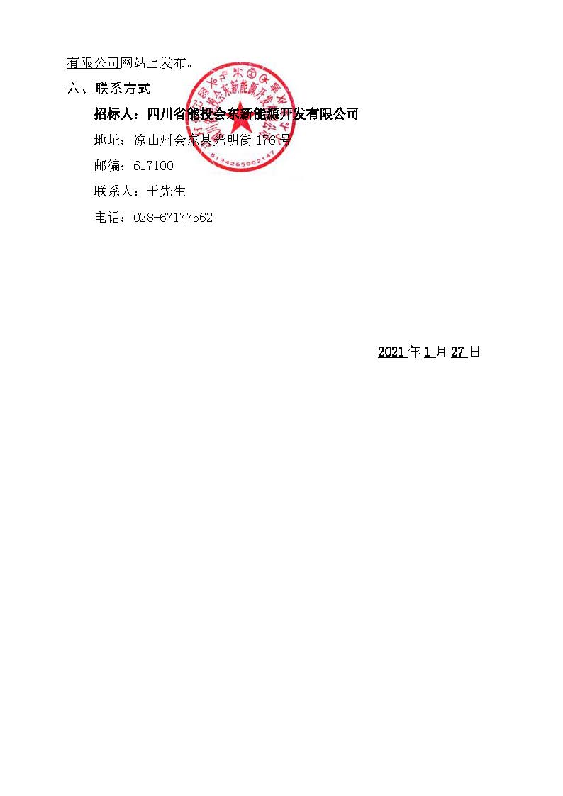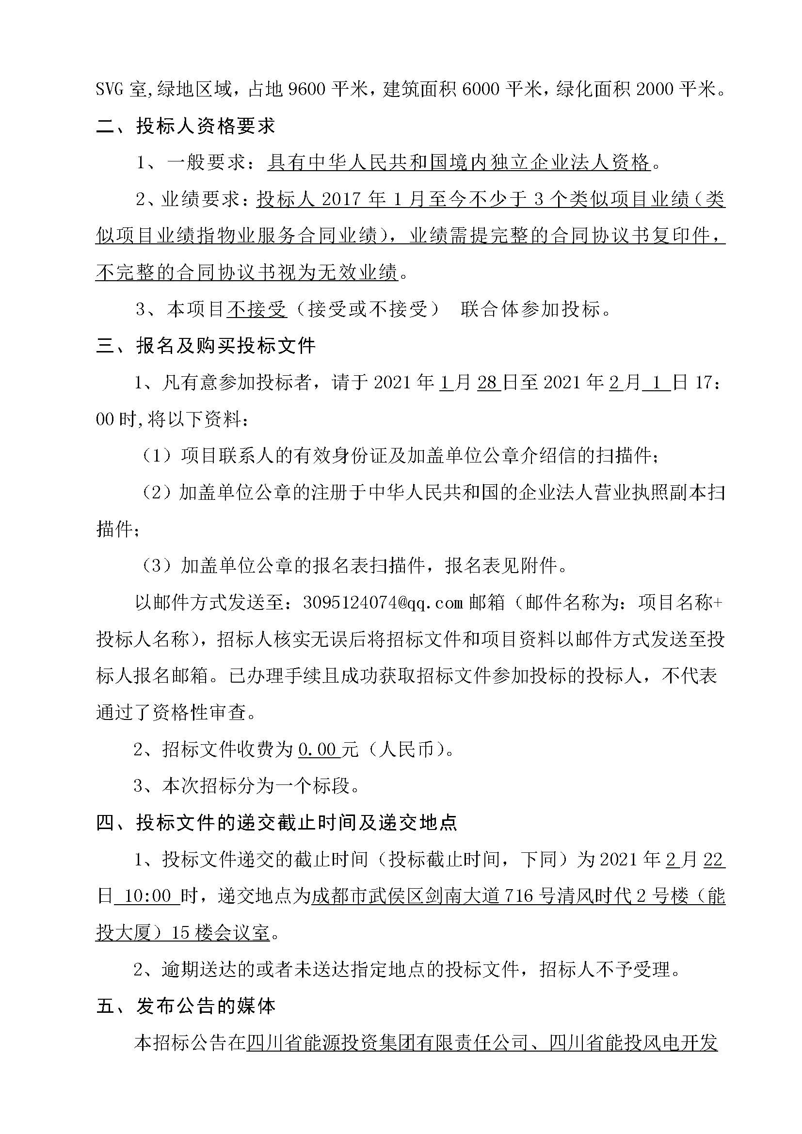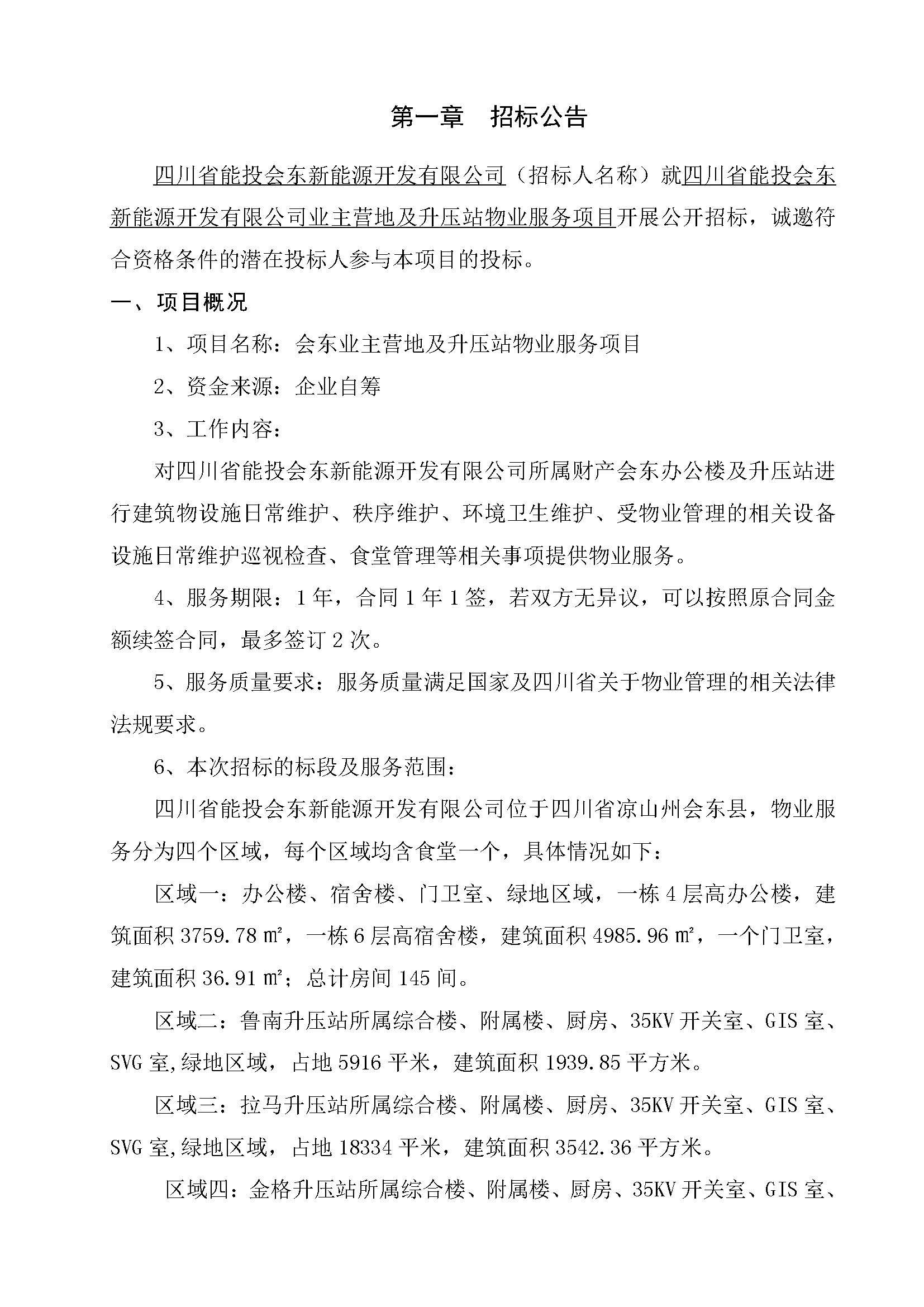 四川省能投会东新能源开发有限公司(招标人名称)就四川省能投会东新能源开发有限公司业主营地及升压站物业服务项目开展公开招标,诚邀符合资格条件的潜在投标人参与本项目的投标。
