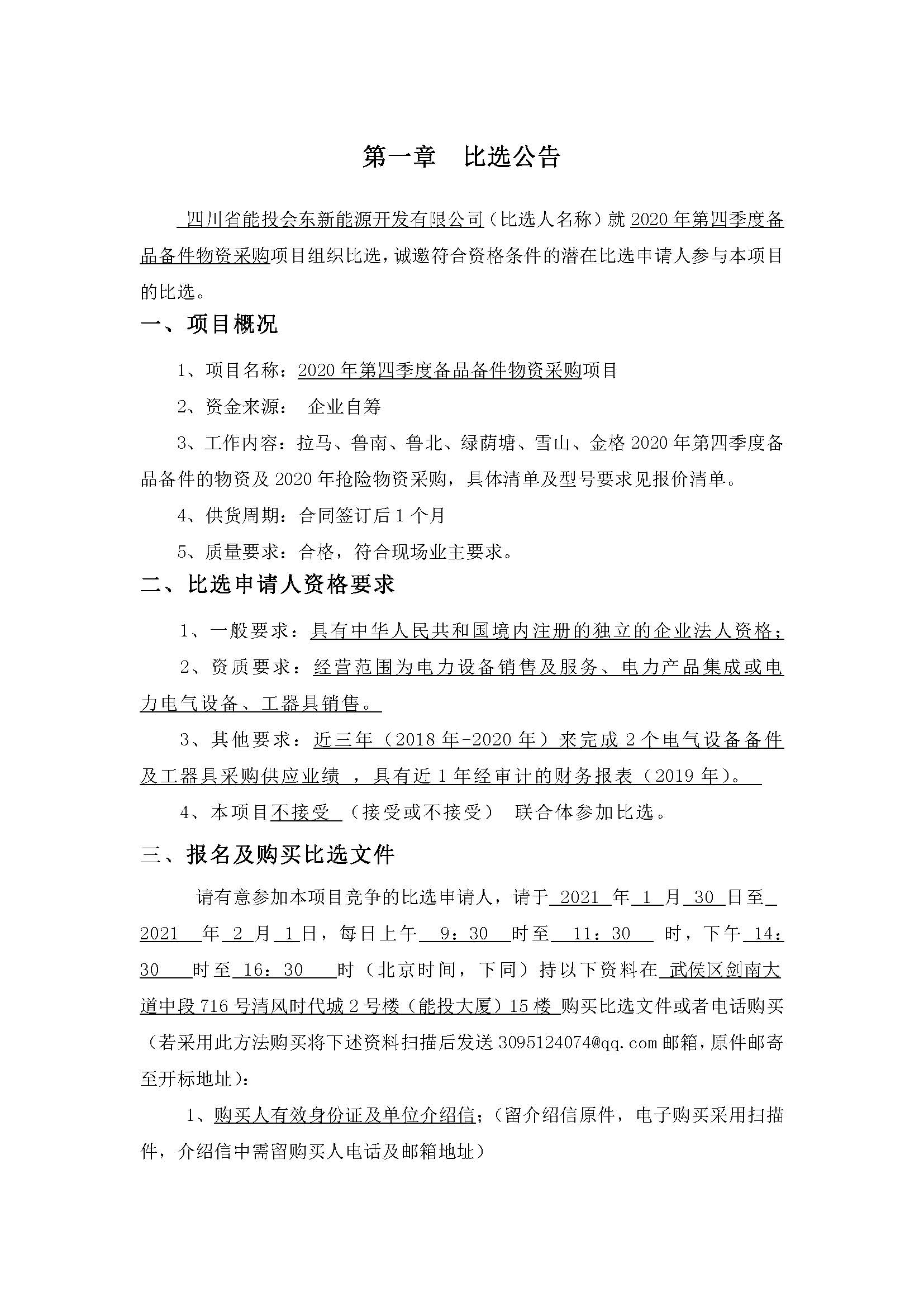 四川省能投会东新能源开发有限公司(比选人名称)就2020年第四季度备品备件物资采购项目组织比选,诚邀符合资格条件的潜在比选申请人参与本项目的比选。