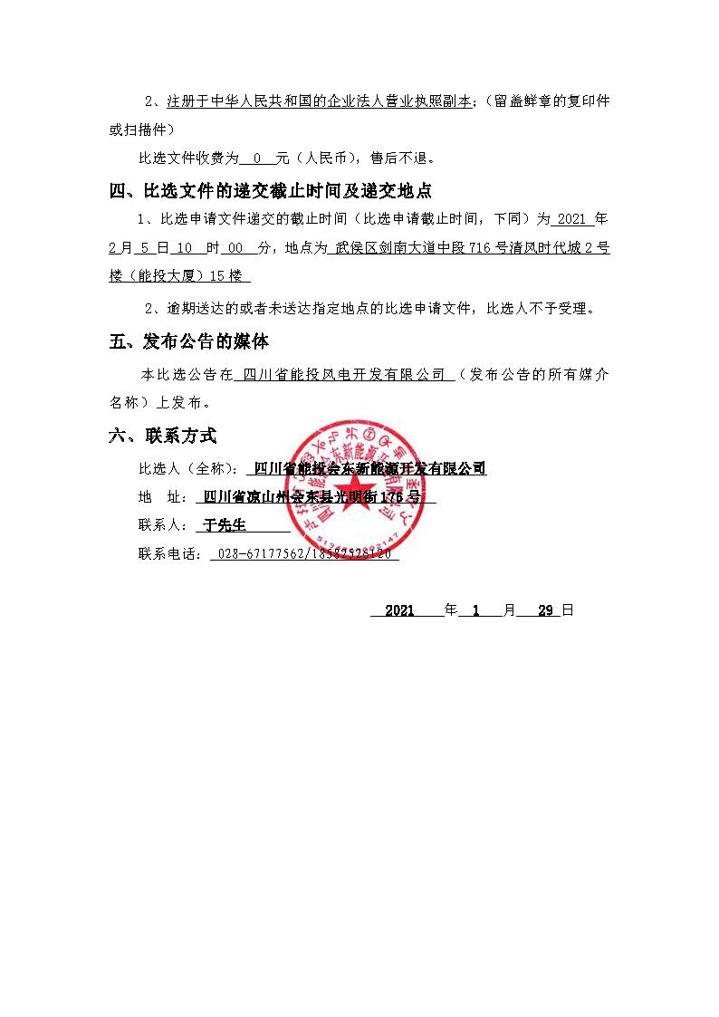 比选人(全称): 四川省能投会东新能源开发有限公司