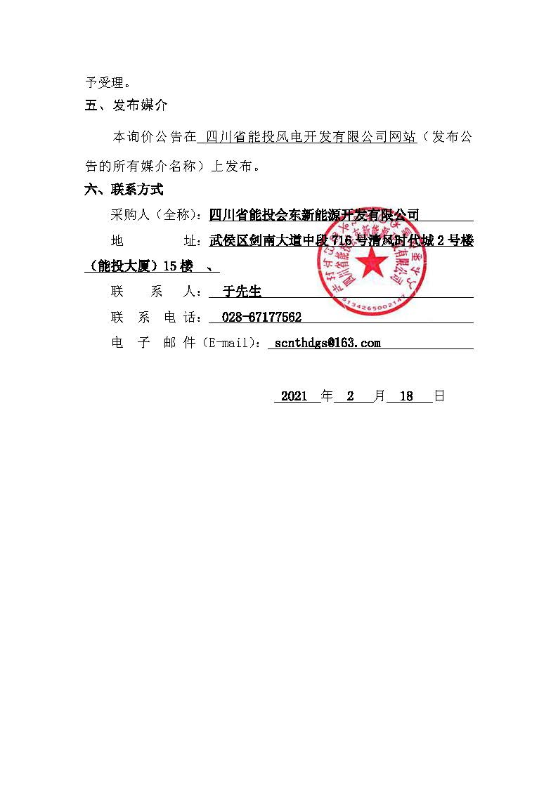 1、 询价响应文件递交的截止时间(询价响应截止时间,下同)为 2021 年 2 月 26 日 10 时 00 分,地点为 武侯区剑南大道中段716号清风时代城2号楼(能投大厦)15楼 。