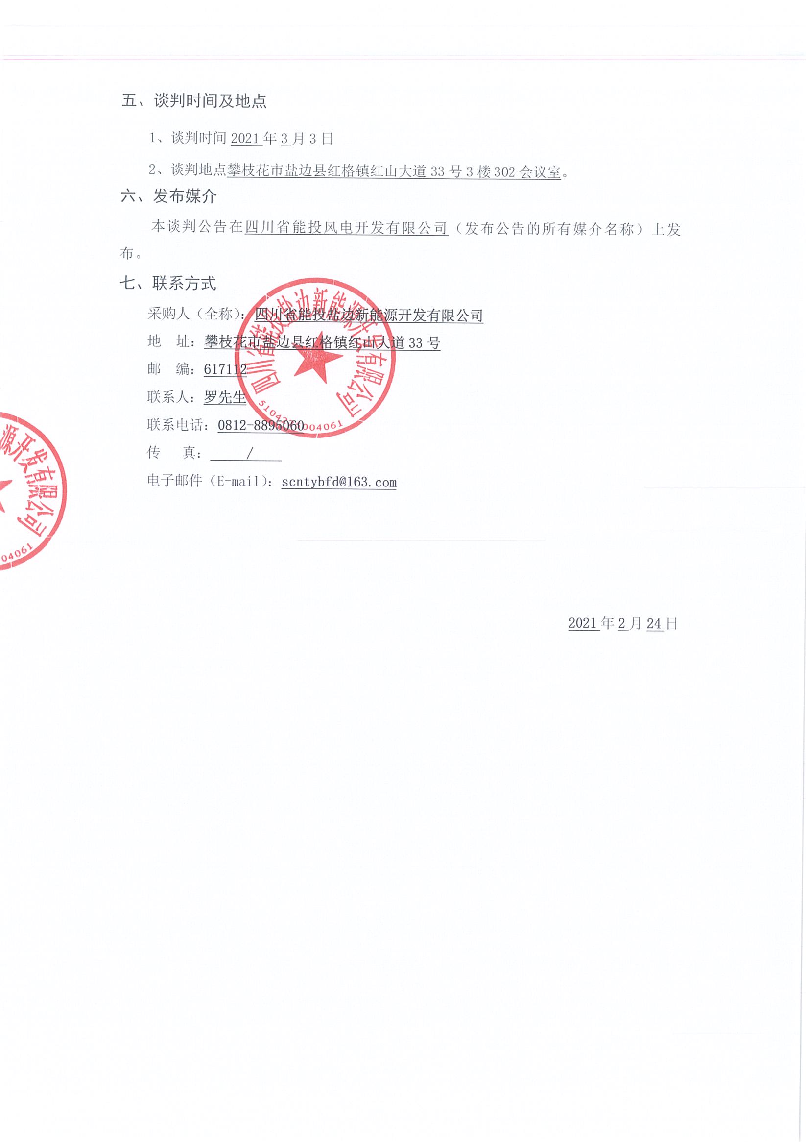 2、谈判地点攀枝花市盐边县红格镇红山大道33号3楼302会议室。