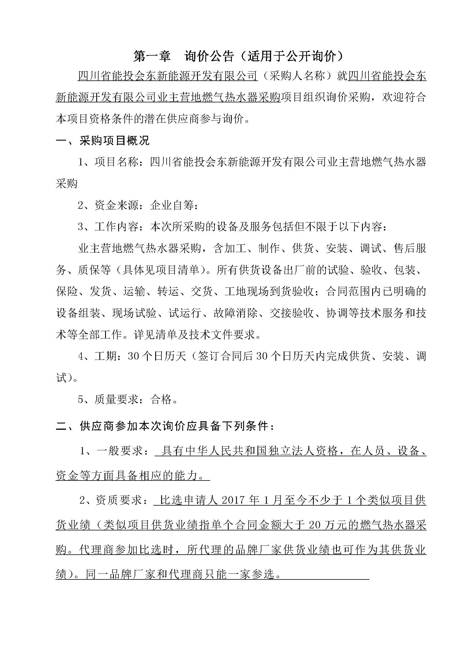 四川省能投会东新能源开发有限公司(采购人名称)就四川省能投会东新能源开发有限公司业主营地燃气热水器采购项目组织询价采购,欢迎符合本项目资格条件的潜在供应商参与询价。