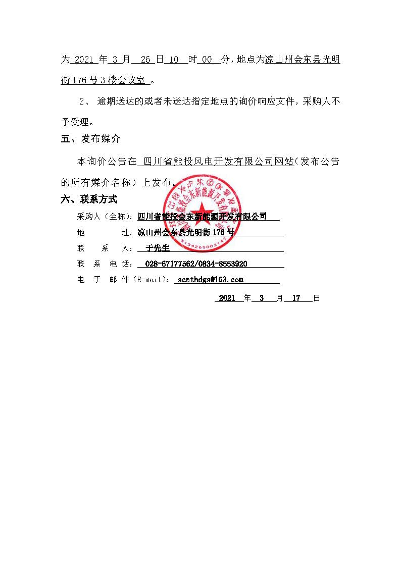 四川省能投会东新能源开发有限公司(采购人名称)就四川省能投会东新能源开发有限公司凉山州会东县淌塘风电场大件设备牵引项目组织询价采购,欢迎符合本项目资格条件的潜在供应商参与询价。