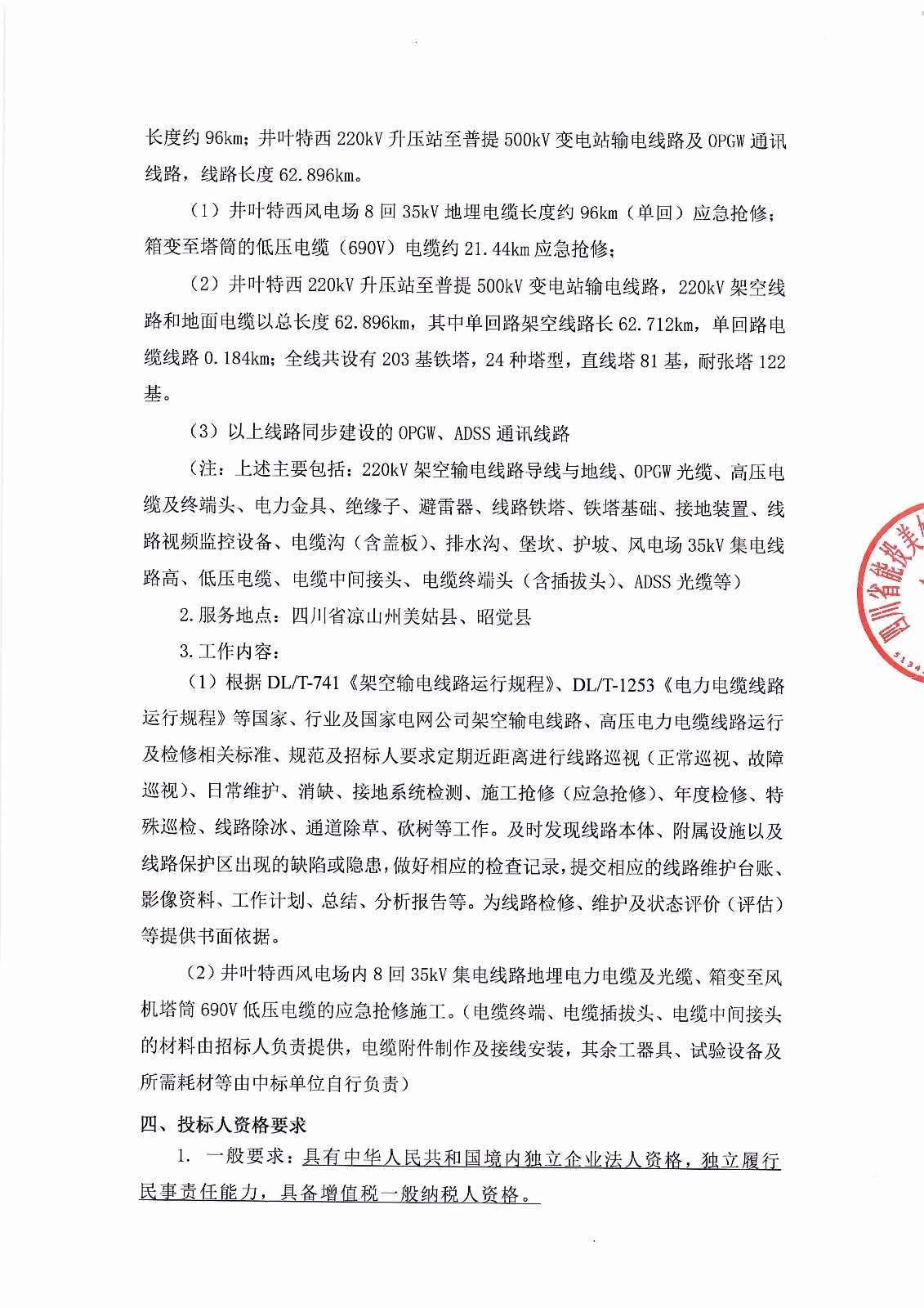 3. 其他要求:企业近5年(2016年1月至今)承担过1个电压等级在220kV及以上且海拔高度在2000米及以上输电线运行维护业绩。