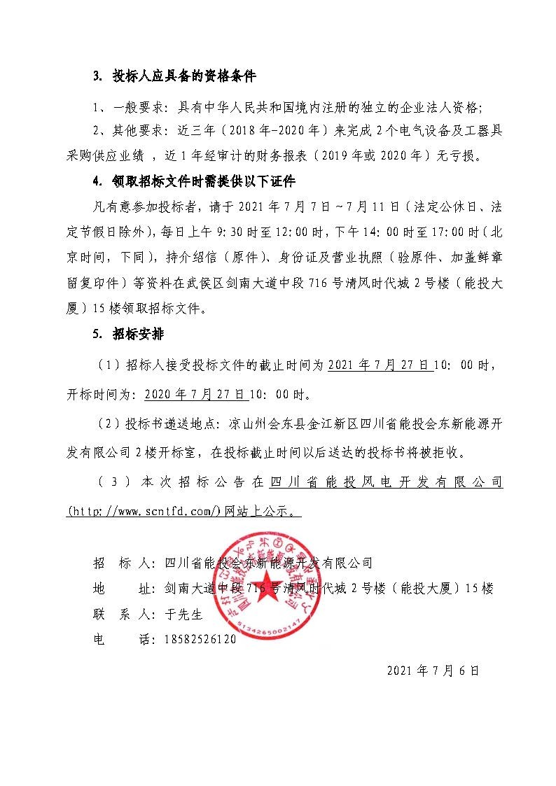 (2)投标书递送地点:凉山州会东县金江新区四川省能投会东新能源开发有限公司2楼开标室,在投标截止时间以后送达的投标书将被拒收。