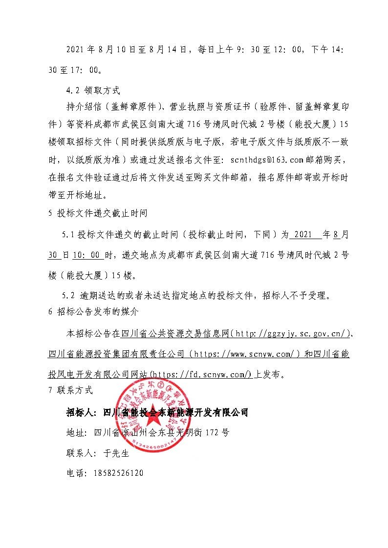 5.1投标文件递交的截止时间(投标截止时间,下同)为 2021 年8月30 日10:00 时,递交地点为成都市武侯区剑南大道716号清凤时代城2号楼(能投大厦)15楼。