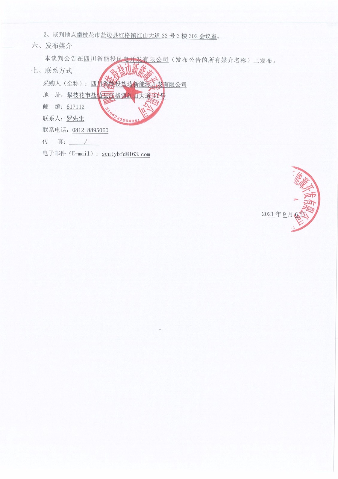 2、谈判地点攀枝花市盐边县红格镇红山大道33号3楼302会议室。