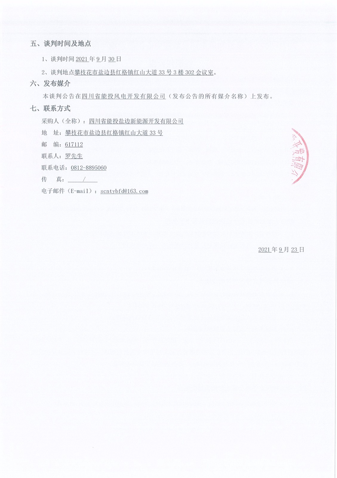 2、谈判地点攀枝花市盐边县红格镇红山大道33号3楼302会议室。