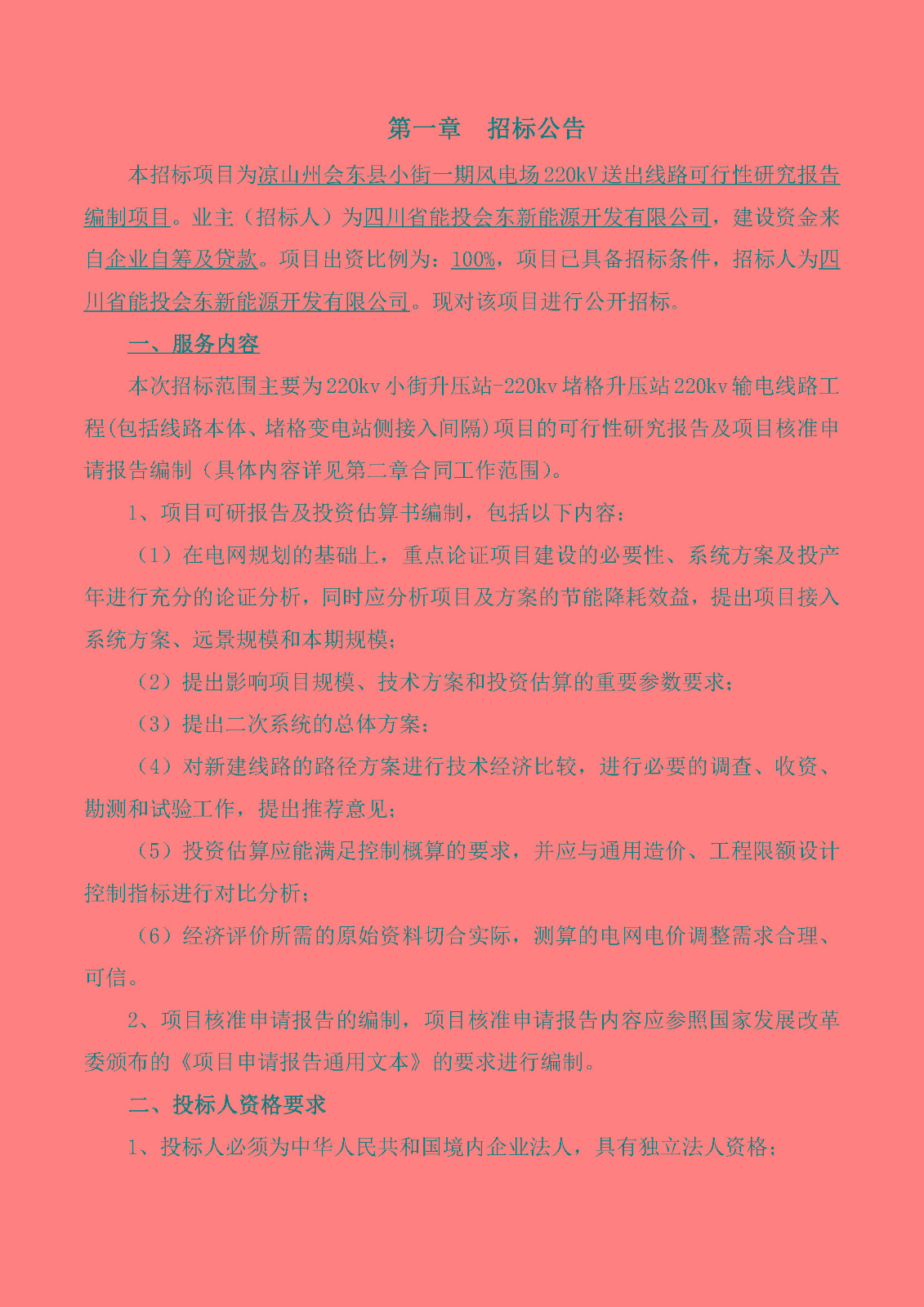 招标人 :四川省能投会东新能源开发有限公司