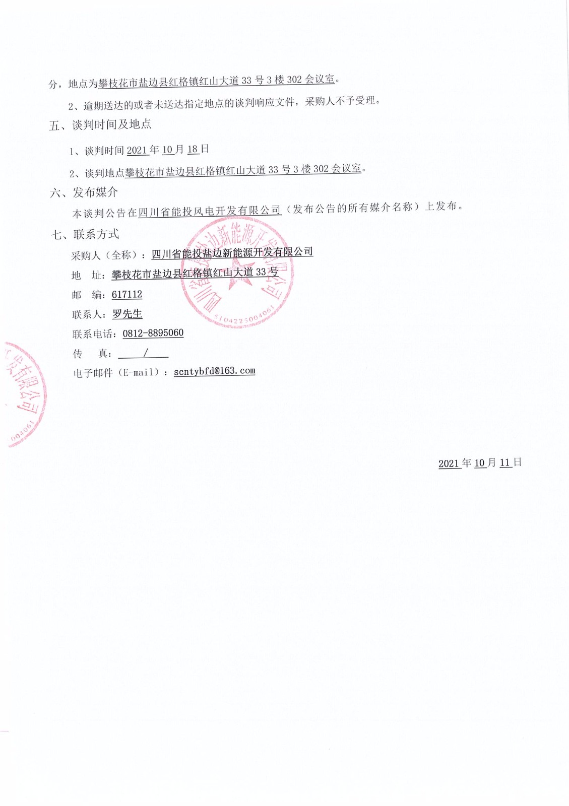 2、谈判地点攀枝花市盐边县红格镇红山大道33号3楼302会议室。