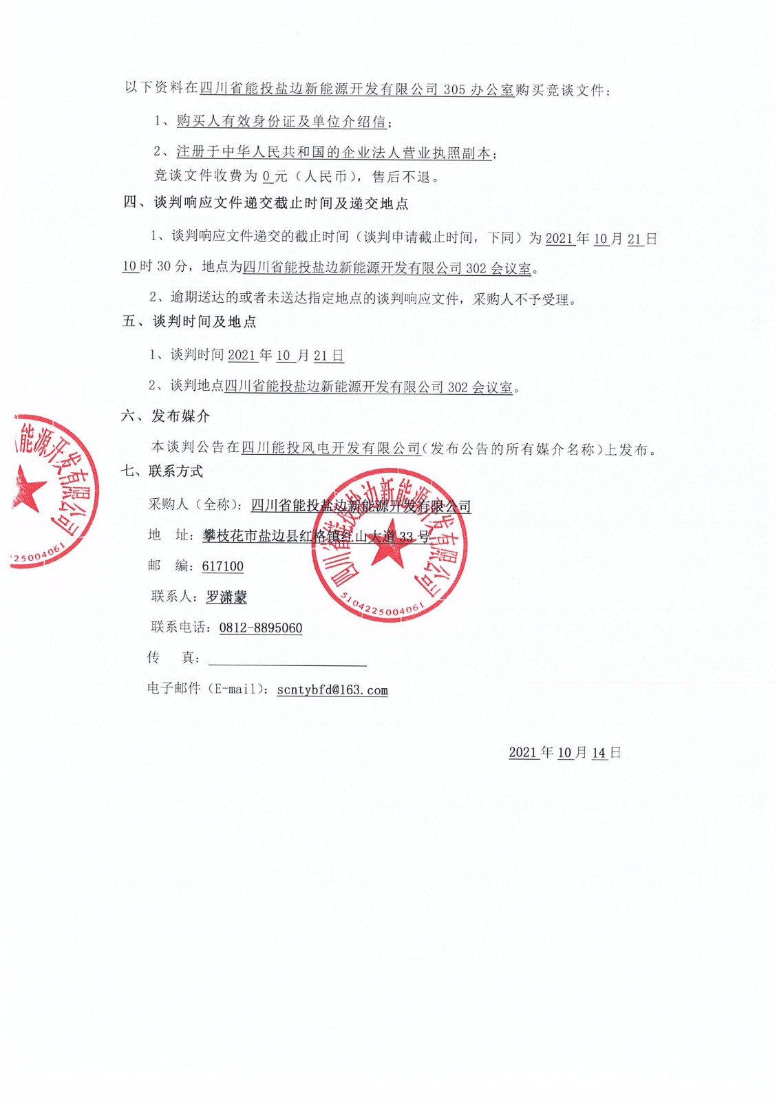 本谈判公告在四川能投风电开发有限公司(发布公告的所有媒介名称)上发布。