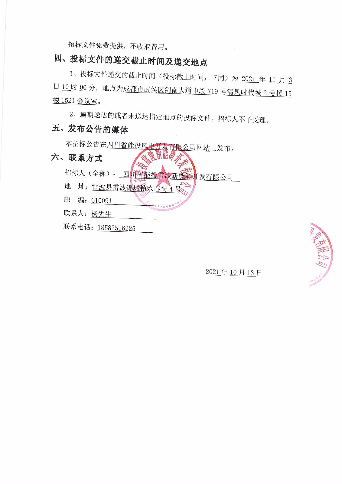 招标人(全称): 四川省能投雷波新能源开发有限公司