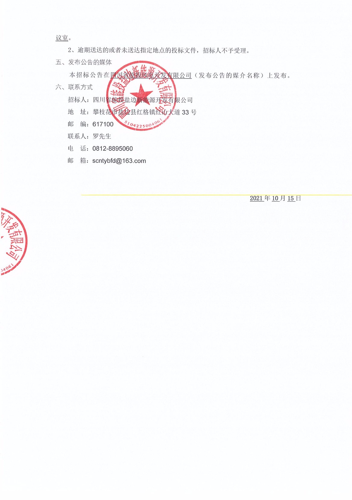 1、投标文件递交的截止时间(投标截止时间,下同)为2021年11月3日10时00分,地点为攀枝花市盐边县红格镇红山大道33号四川省能投盐边新能源开发有限公司302楼会议室。