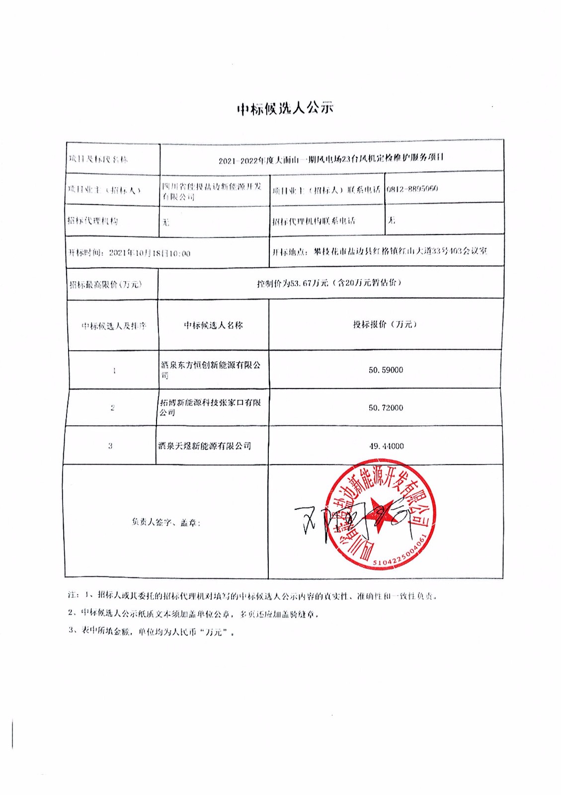 上一条:大面山风电场二期电场箱变渗油处理项目中标候选人公示