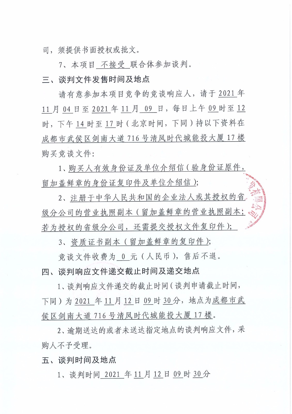 2、谈判地点:成都市武侯区剑南大道716号清凤时代城能投大厦17楼。