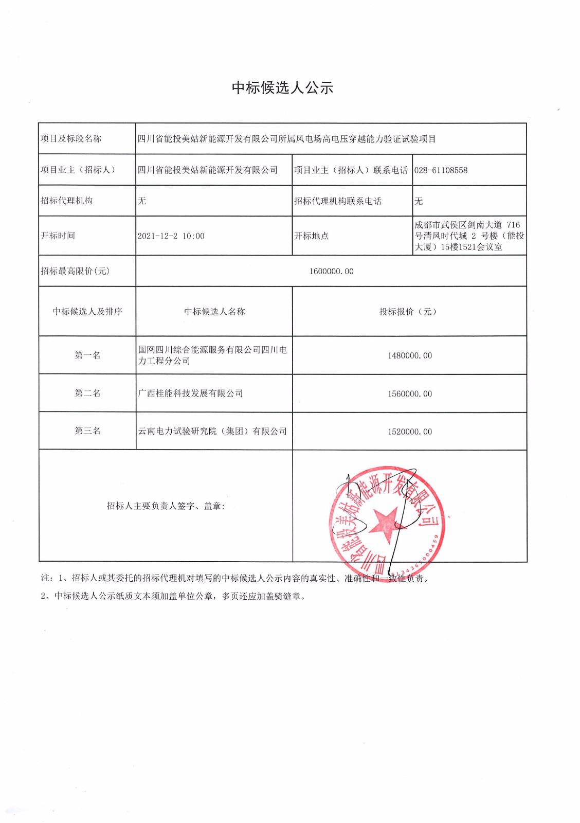上一条:大面山风电场二期电场箱变渗油处理项目中标候选人公示