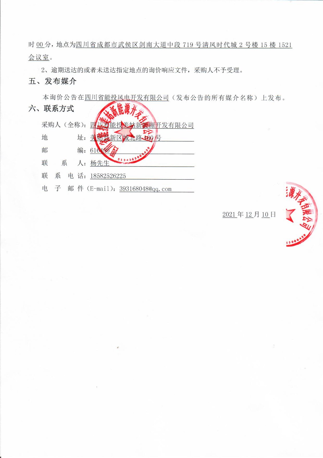 采购人(全称):四川省能投美姑新能源开发有限公司