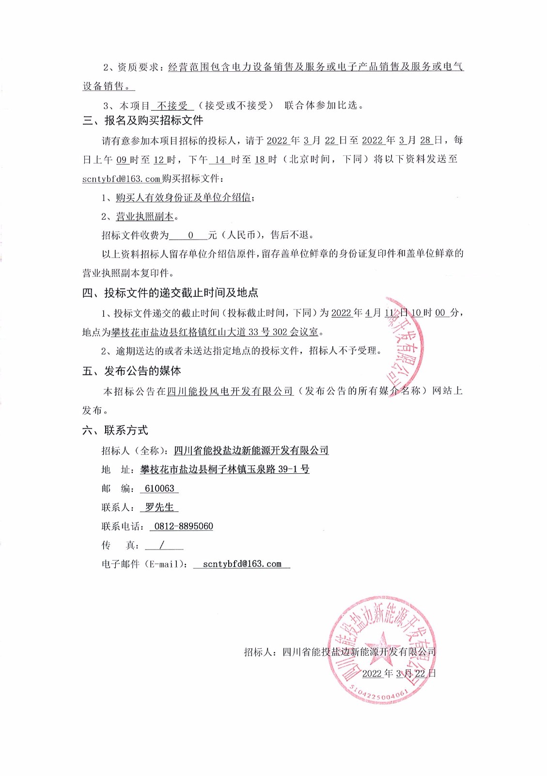 招标人:四川省能投盐边新能源开发有限公司