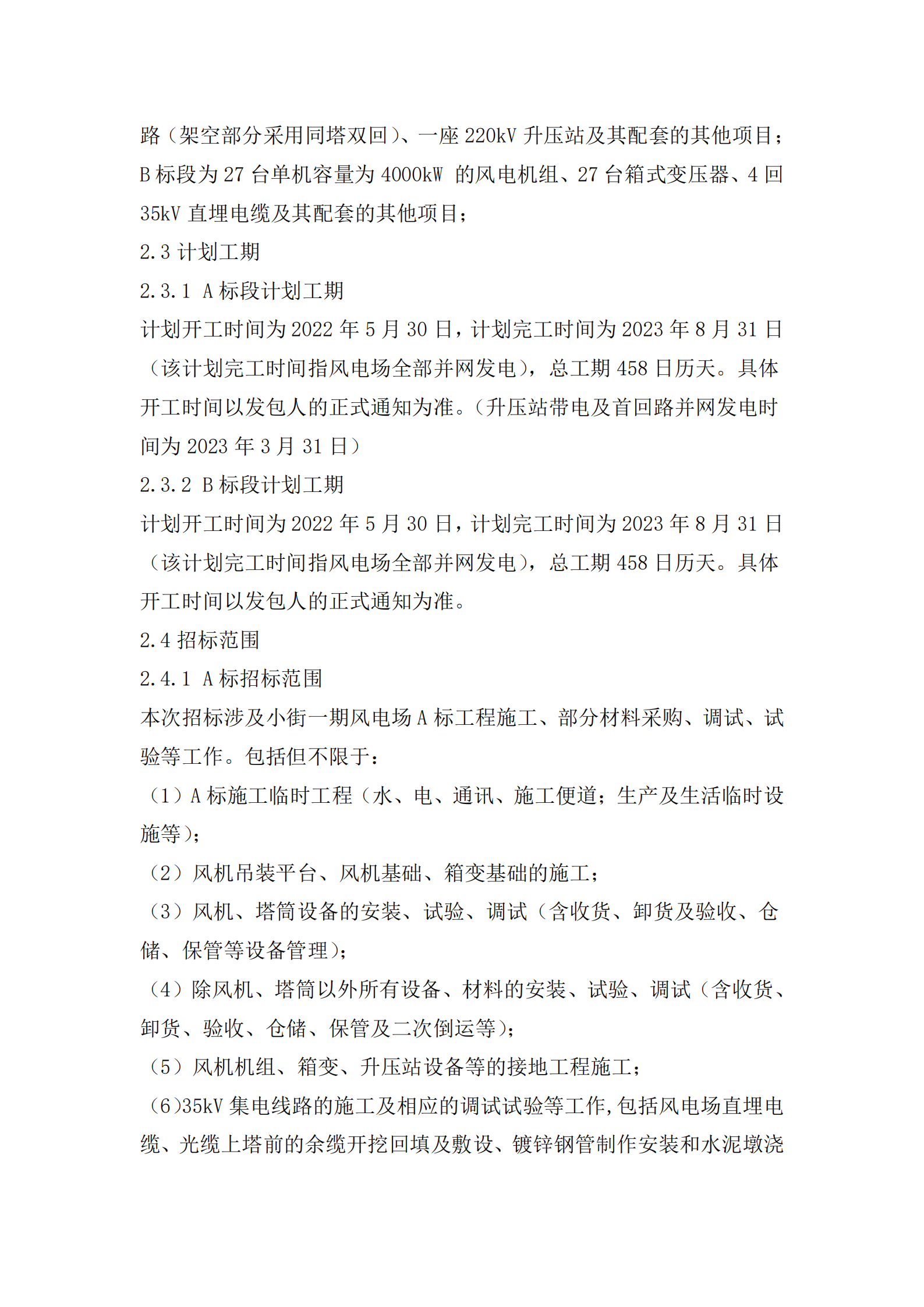 本次招标涉及小街一期风电场A标工程施工、部分材料采购、调试、试验等工作。包括但不限于: