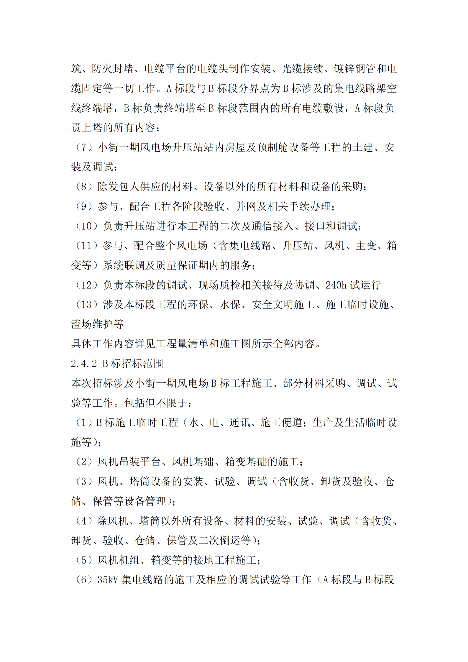 本次招标涉及小街一期风电场B标工程施工、部分材料采购、调试、试验等工作。包括但不限于:
