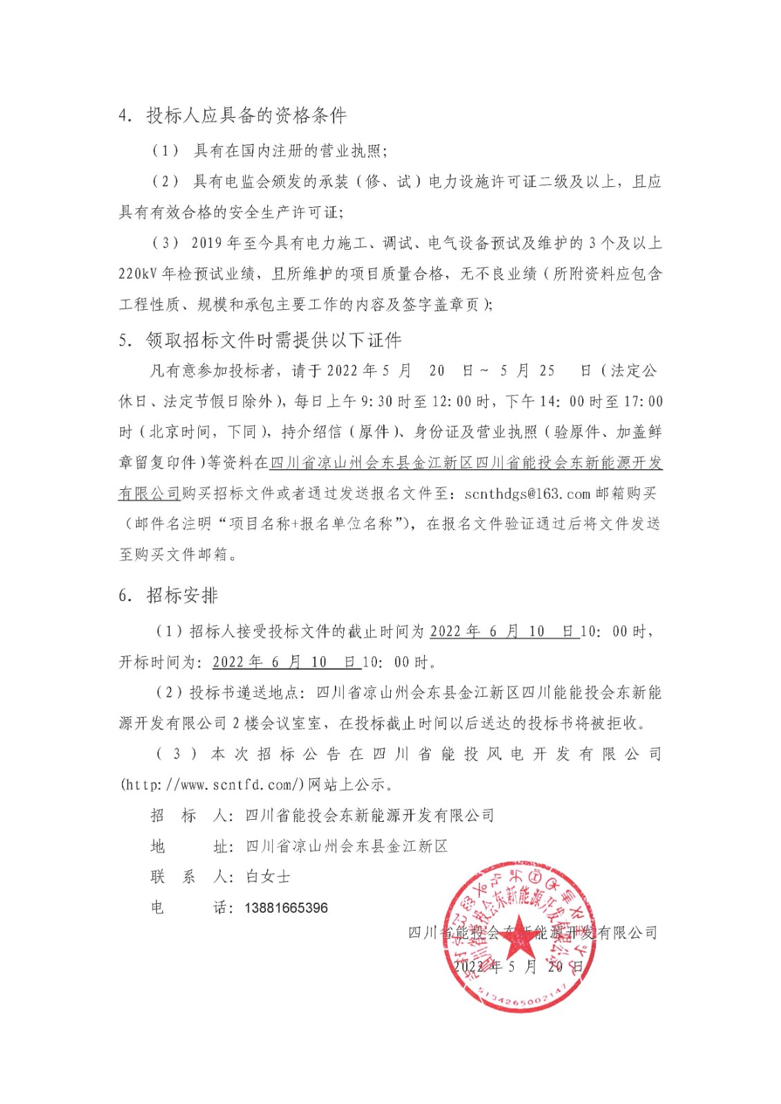 (2)投标书递送地点:四川省凉山州会东县金江新区四川能能投会东新能源开发有限公司2楼会议室室,在投标截止时间以后送达的投标书将被拒收。