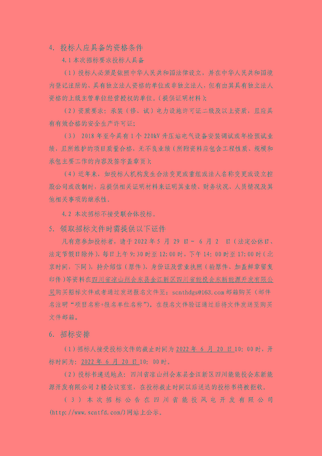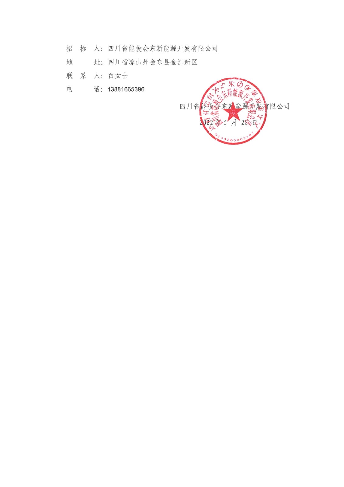 (2)投标书递送地点:四川省凉山州会东县金江新区四川能能投会东新能源开发有限公司2楼会议室室,在投标截止时间以后送达的投标书将被拒收。