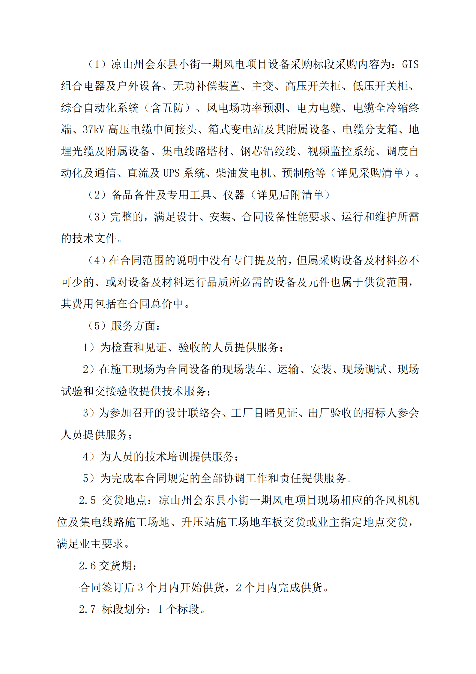 2.5 交货地点:凉山州会东县小街一期风电项目现场相应的各风机机位及集电线路施工场地、升压站施工场地车板交货或业主指定地点交货,满足业主要求。