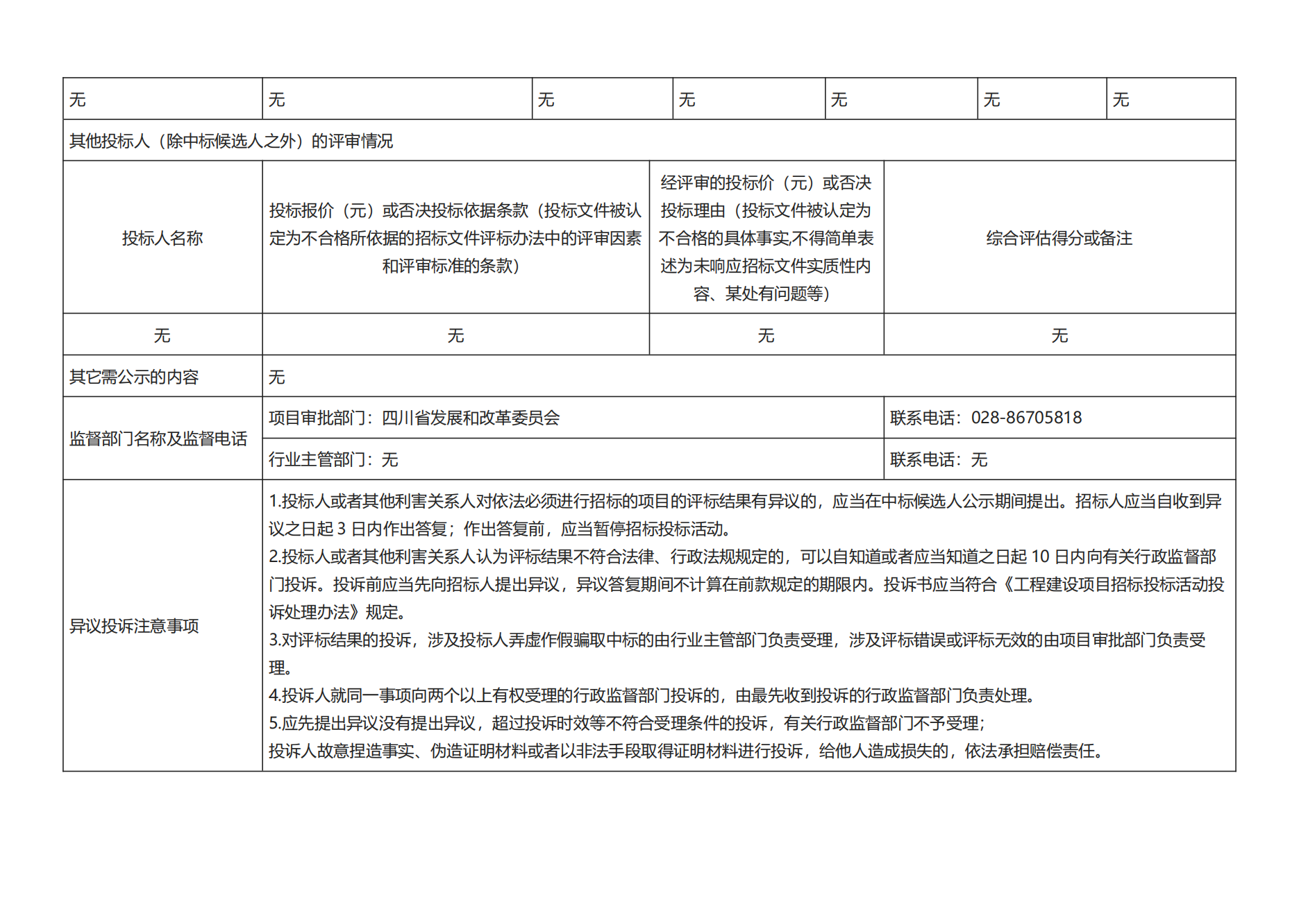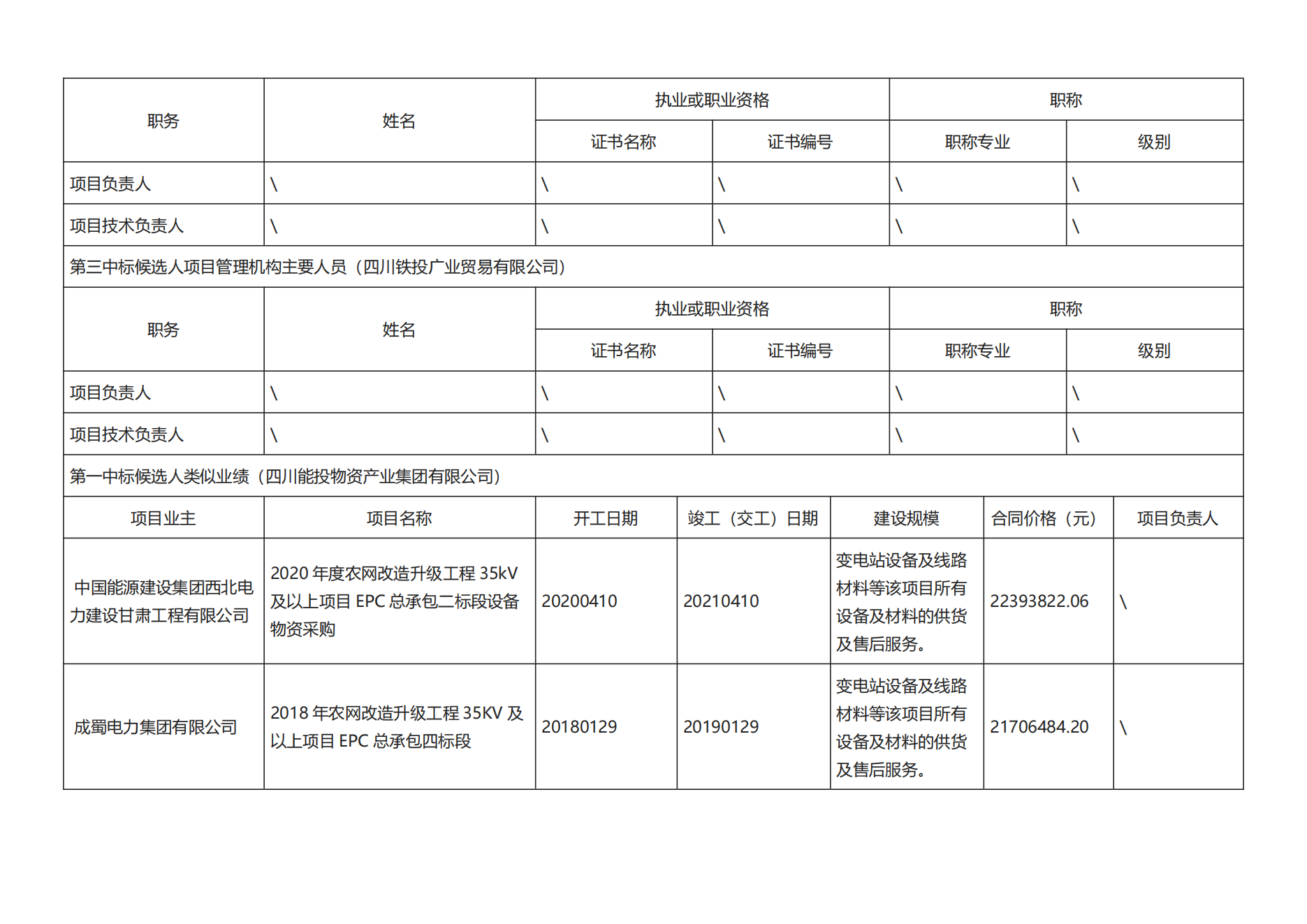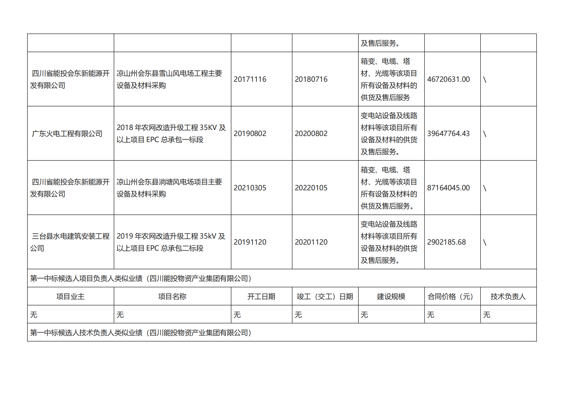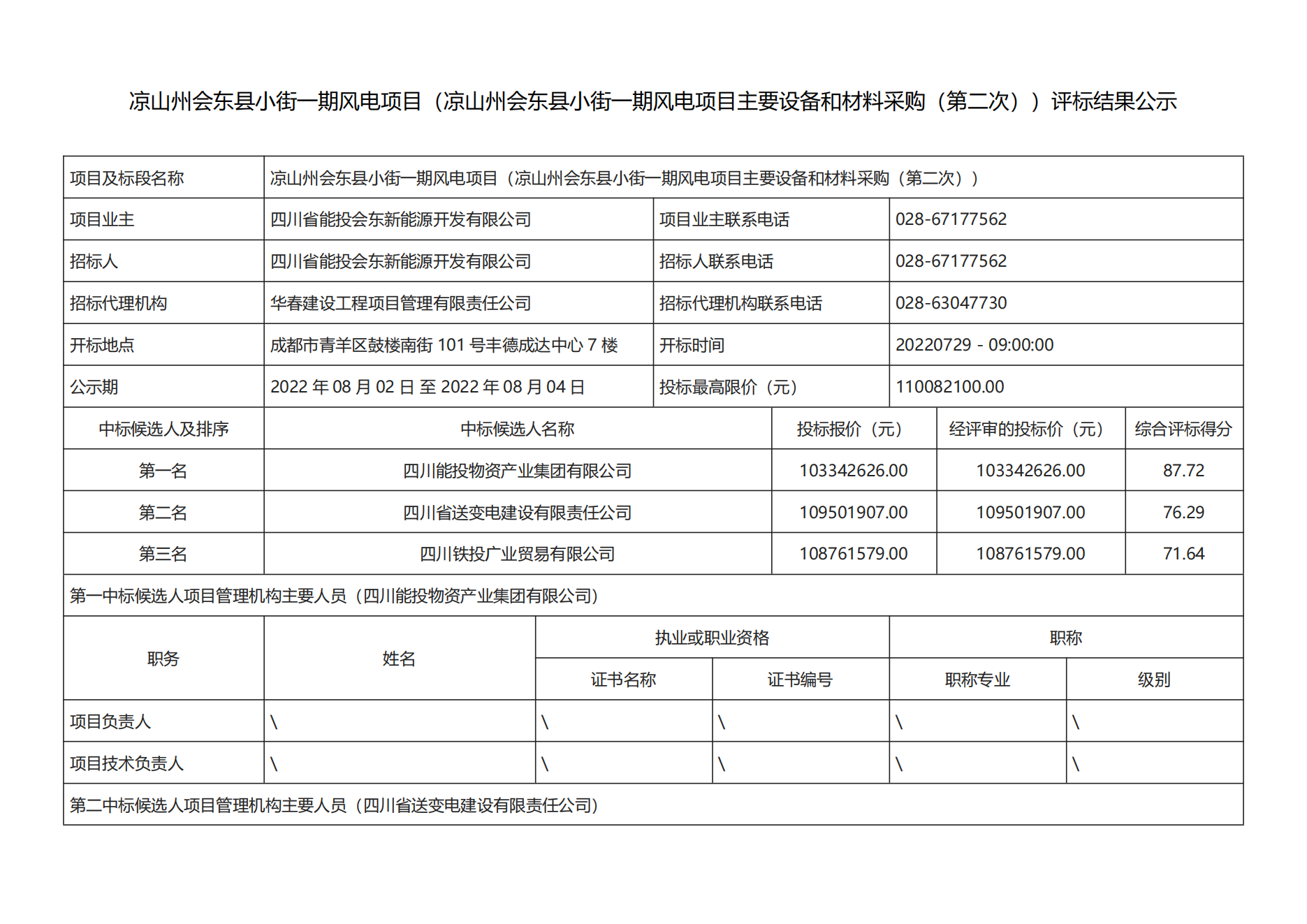 凉山州会东县小街一期风电项目主要设备和材料采购(第二次)评标结果公示
