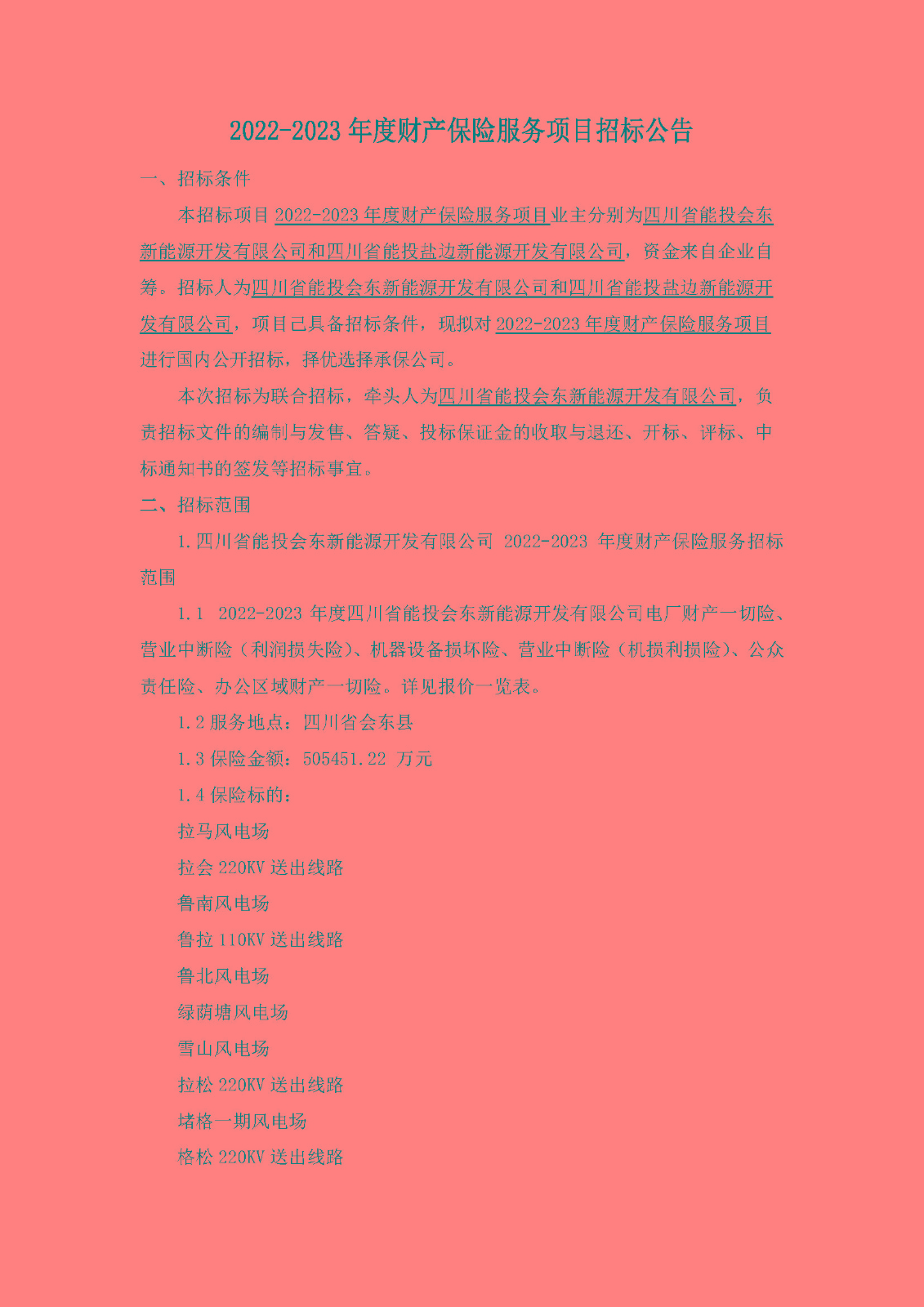 1.四川省能投会东新能源开发有限公司2022-2023年度财产保险服务招标范围