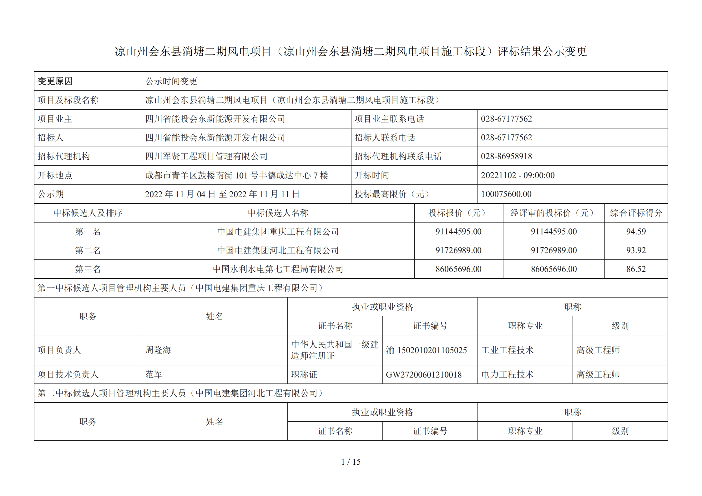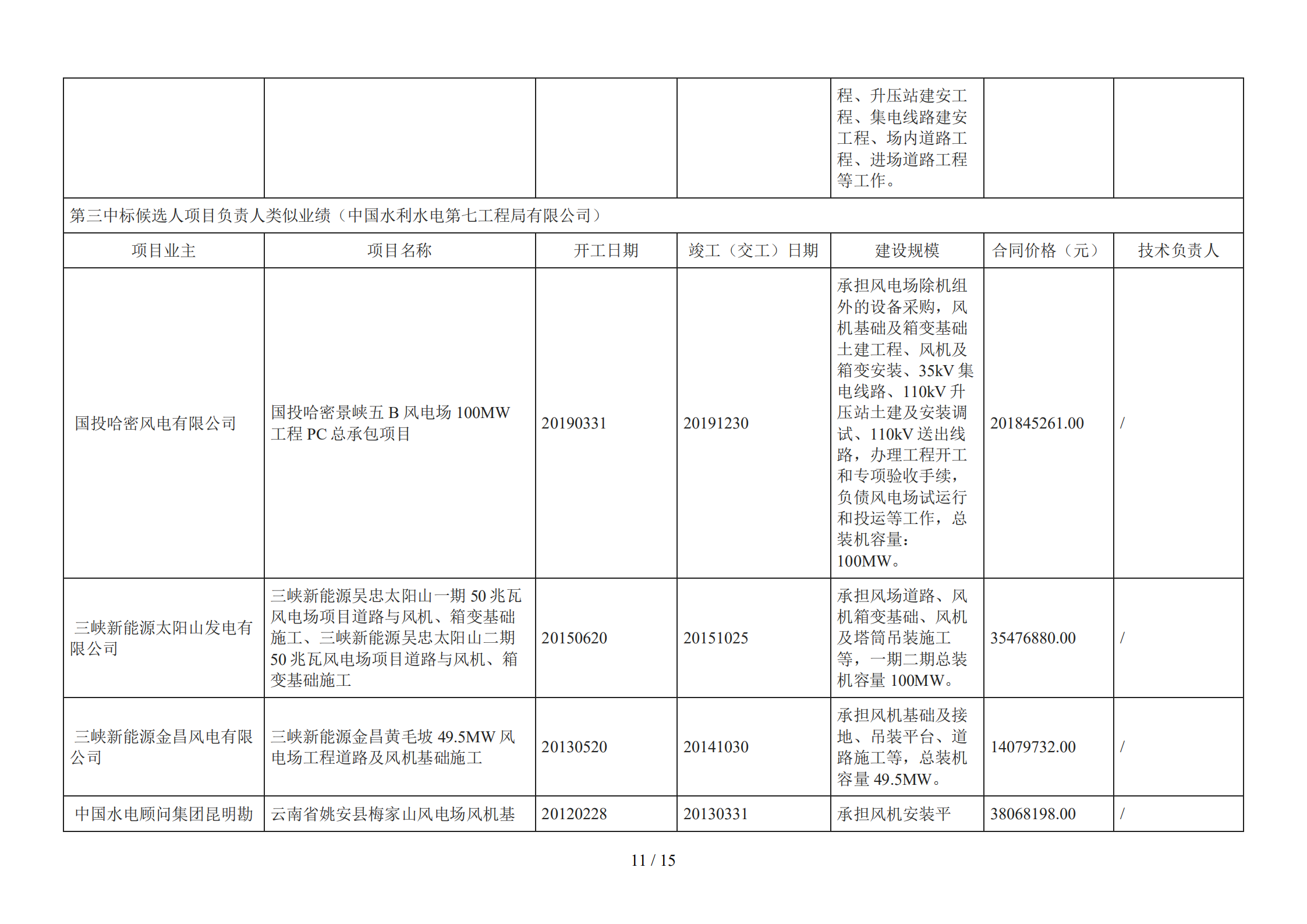 凉山州会东县淌塘二期风电项目施工中标候选人公示