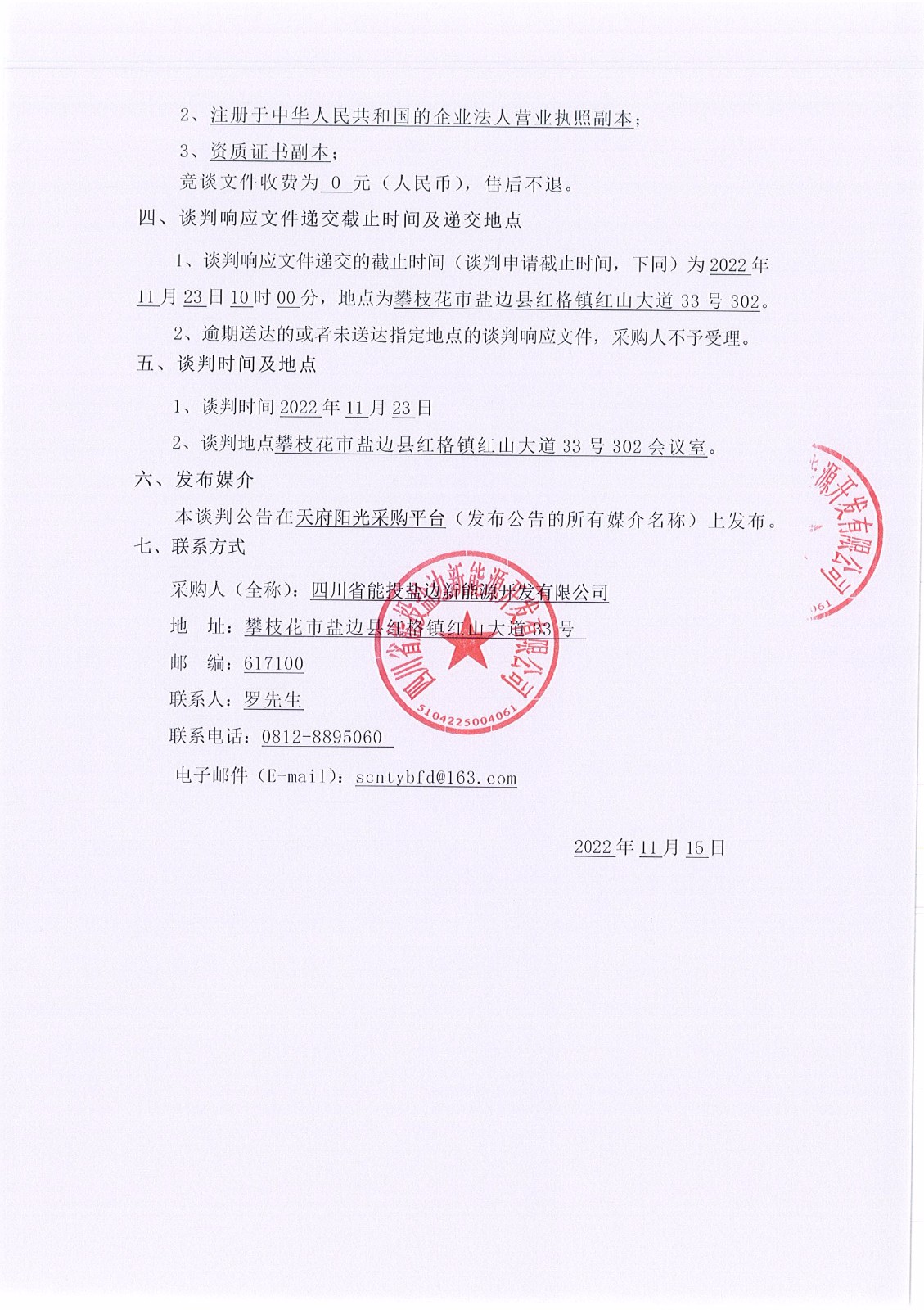 2、谈判地点攀枝花市盐边县红格镇红山大道33号302会议室。