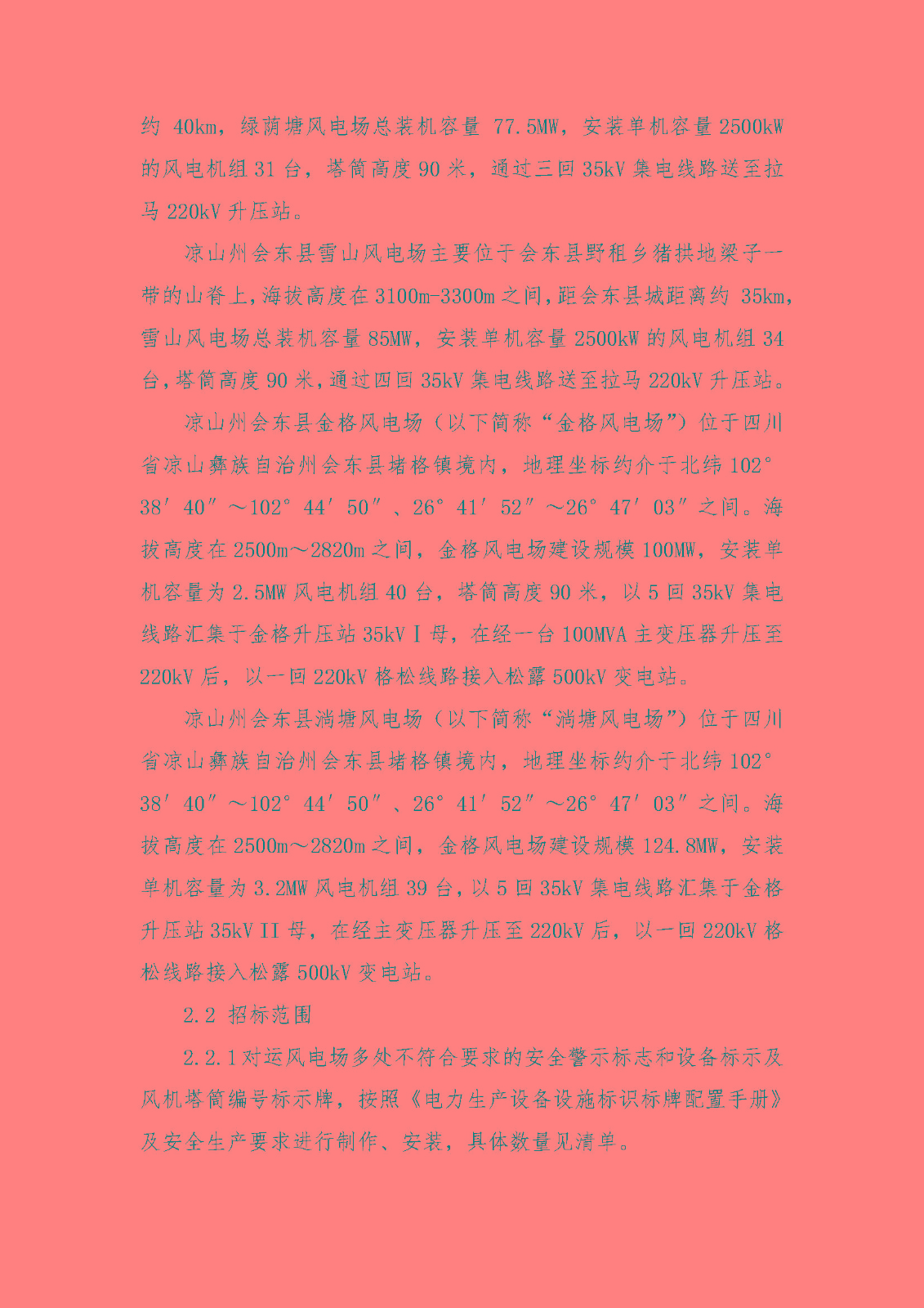 2.2.1对运风电场多处不符合要求的安全警示标志和设备标示及风机塔筒编号标示牌,按照《电力生产设备设施标识标牌配置手册》及安全生产要求进行制作、安装,具体数量见清单。