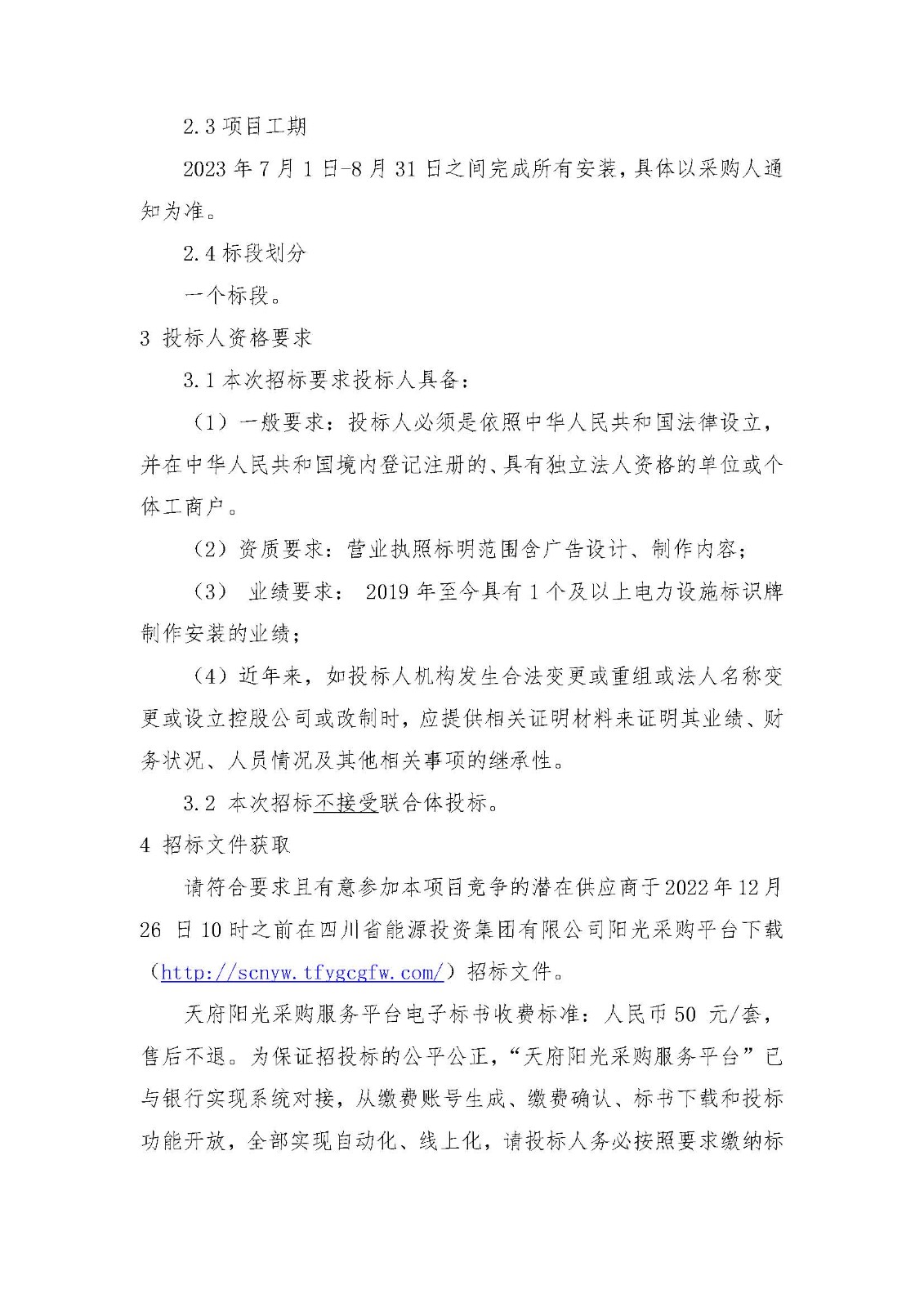 请符合要求且有意参加本项目竞争的潜在供应商于2022年12月26 日10时之前在四川省能源投资集团有限公司阳光采购平台下载(http://scnyw.tfygcgfw.com/)招标文件。