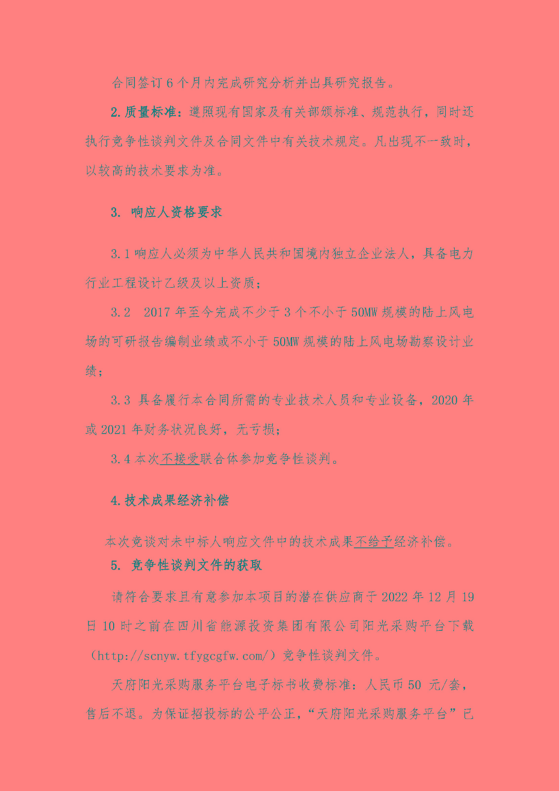 请符合要求且有意参加本项目的潜在供应商于2022年12月19日10时之前在四川省能源投资集团有限公司阳光采购平台下载(http://scnyw.tfygcgfw.com/)竞争性谈判文件。