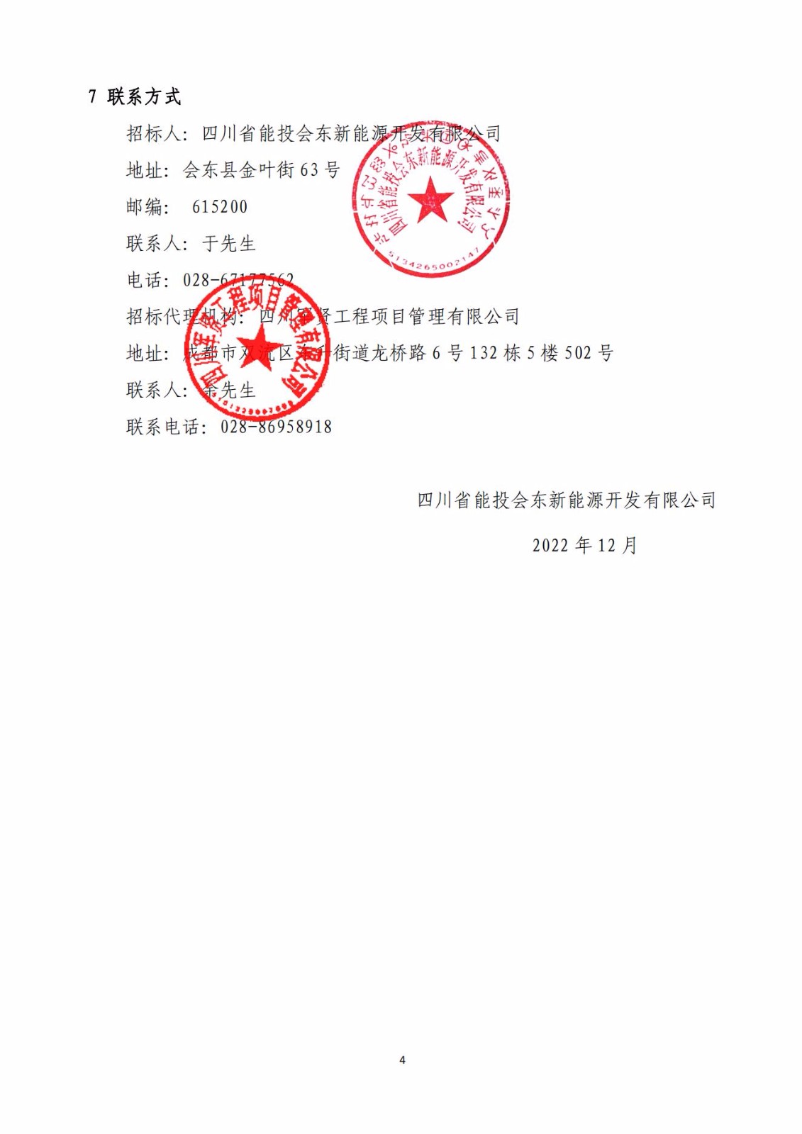 招标人:四川省能投会东新能源开发有限公司