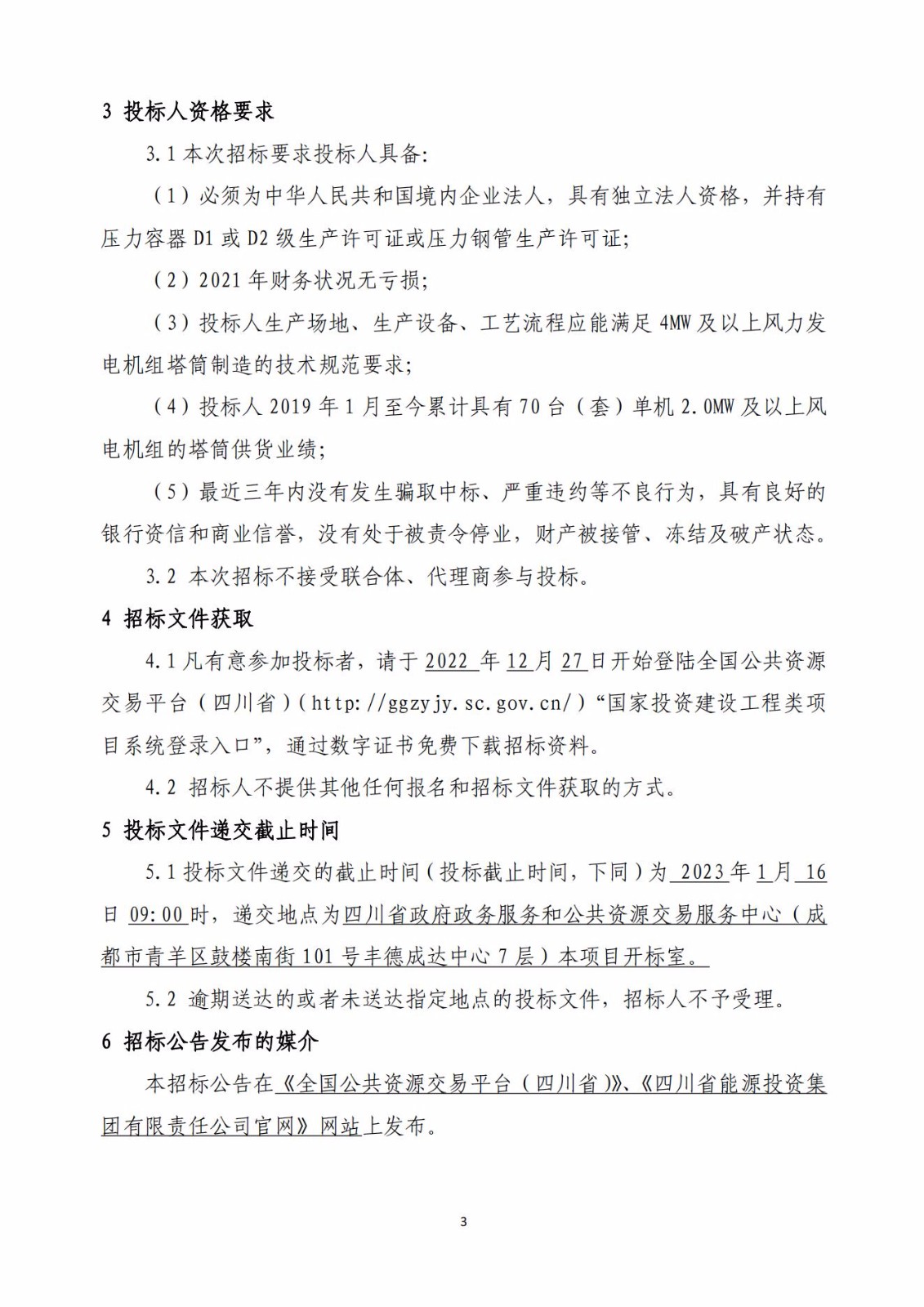 本招标公告在《全国公共资源交易平台(四川省)》、《四川省能源投资集团有限责任公司官网》网站上发布。