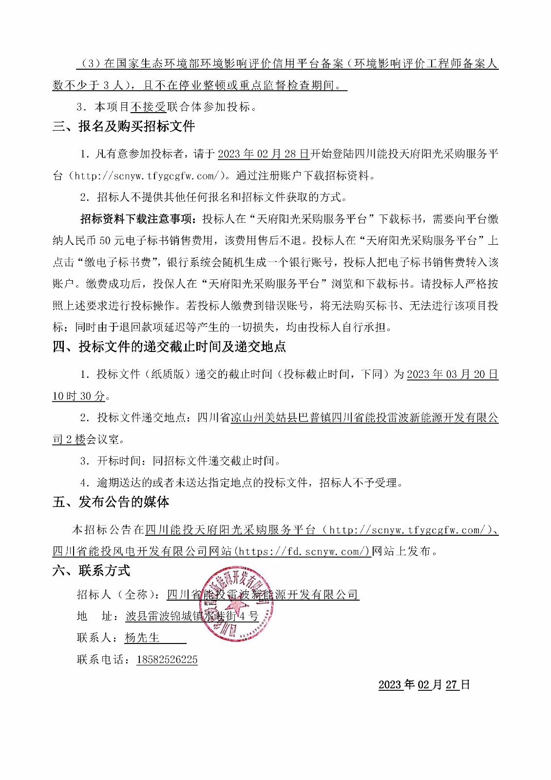 招标人(全称):四川省能投雷波新能源开发有限公司
