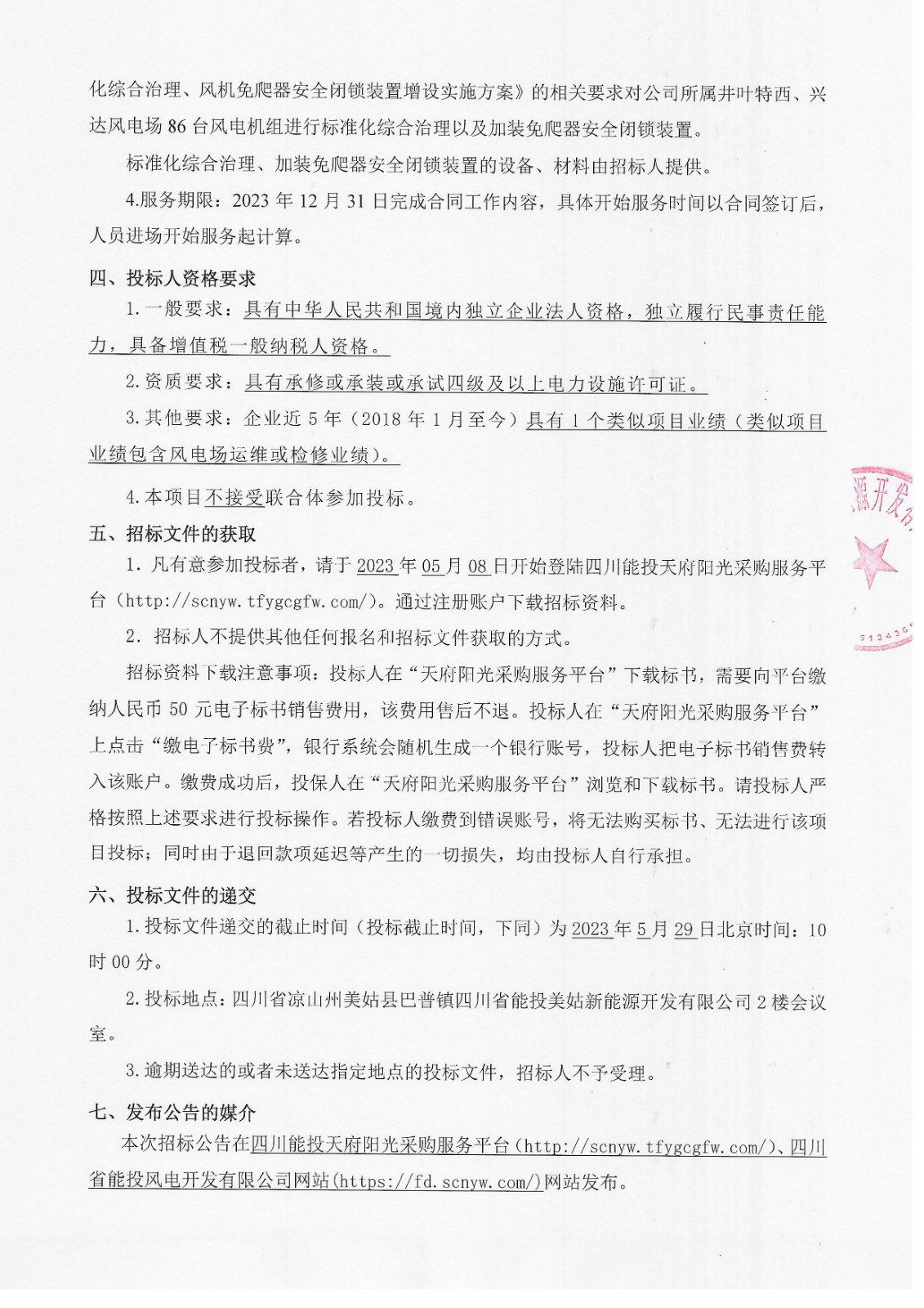 2.投标地点:四川省凉山州美姑县巴普镇四川省能投美姑新能源开发有限公司2楼会议室。