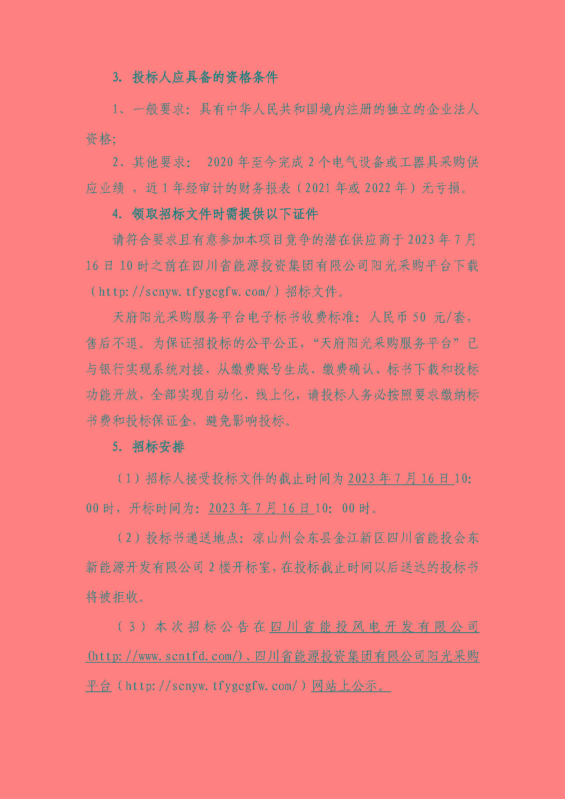 请符合要求且有意参加本项目竞争的潜在供应商于2023年7月16日10时之前在四川省能源投资集团有限公司阳光采购平台下载(http://scnyw.tfygcgfw.com/)招标文件。