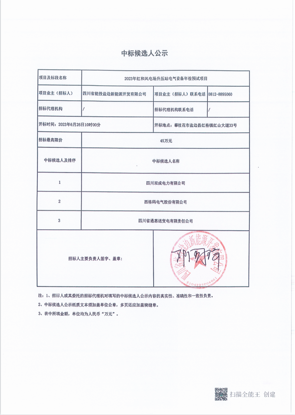上一条:大面山风电场二期电场箱变渗油处理项目中标候选人公示