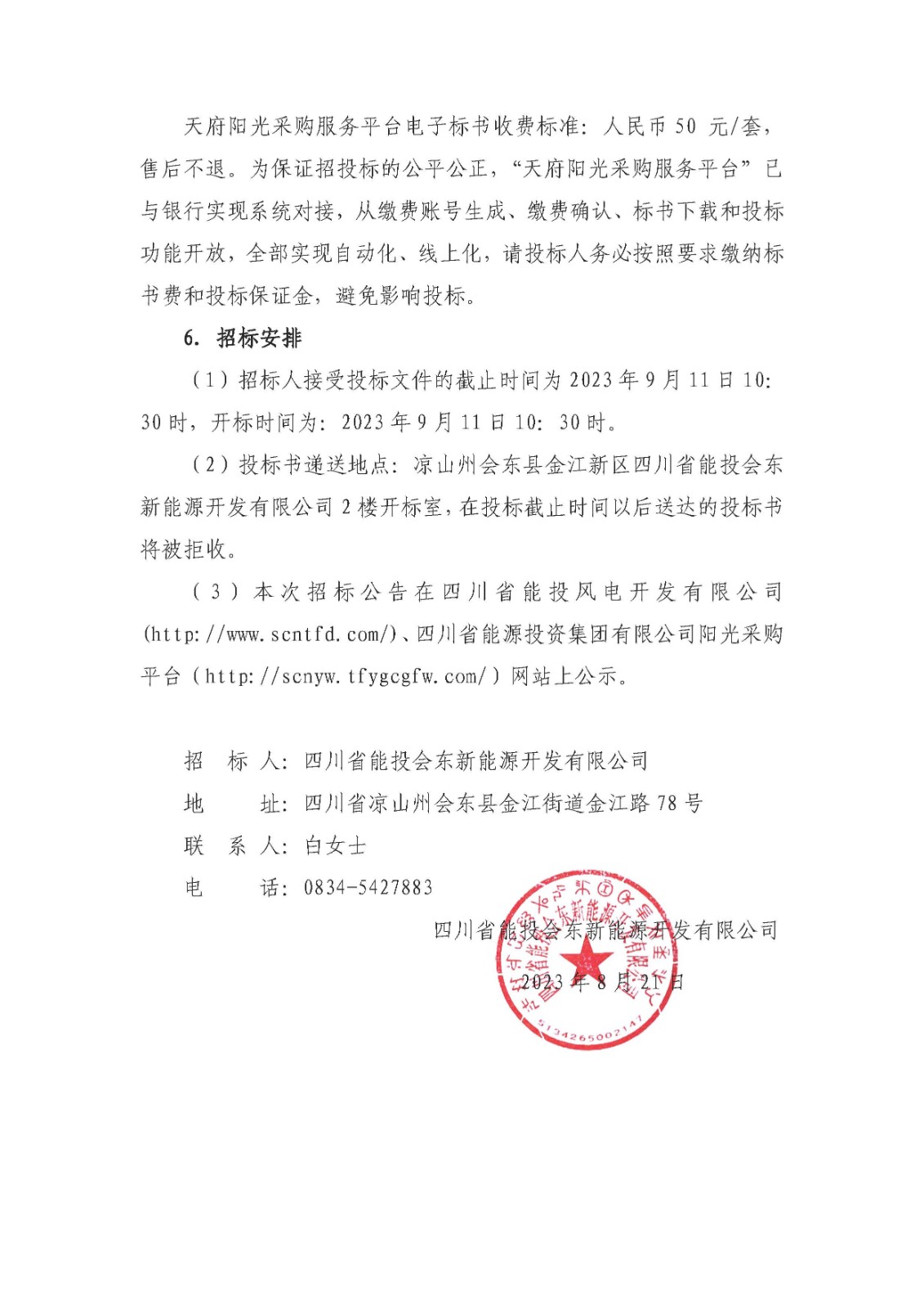 (2)投标书递送地点:凉山州会东县金江新区四川省能投会东新能源开发有限公司2楼开标室,在投标截止时间以后送达的投标书将被拒收。