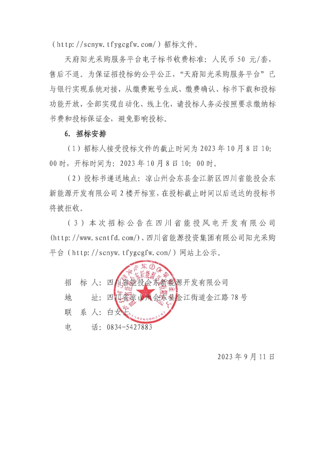 (2)投标书递送地点:凉山州会东县金江新区四川省能投会东新能源开发有限公司2楼开标室,在投标截止时间以后送达的投标书将被拒收。
