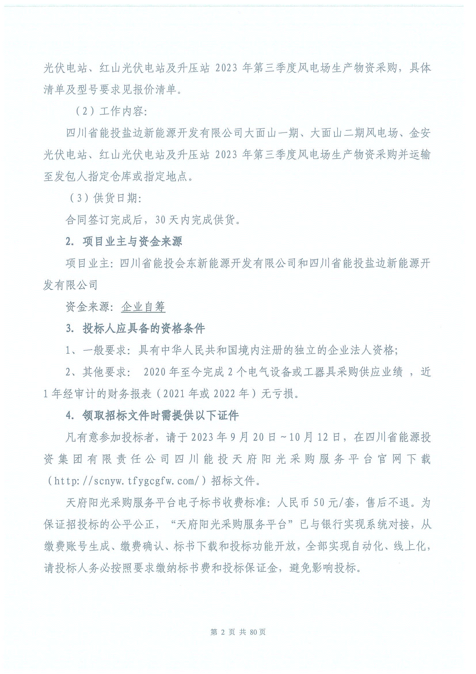 凡有意参加投标者,请于2023年9月20日~10月12日,在四川省能源投资集团有限责任公司四川能投天府阳光采购服务平台官网下载(http://scnyw.tfygcgfw.com/)招标文件。