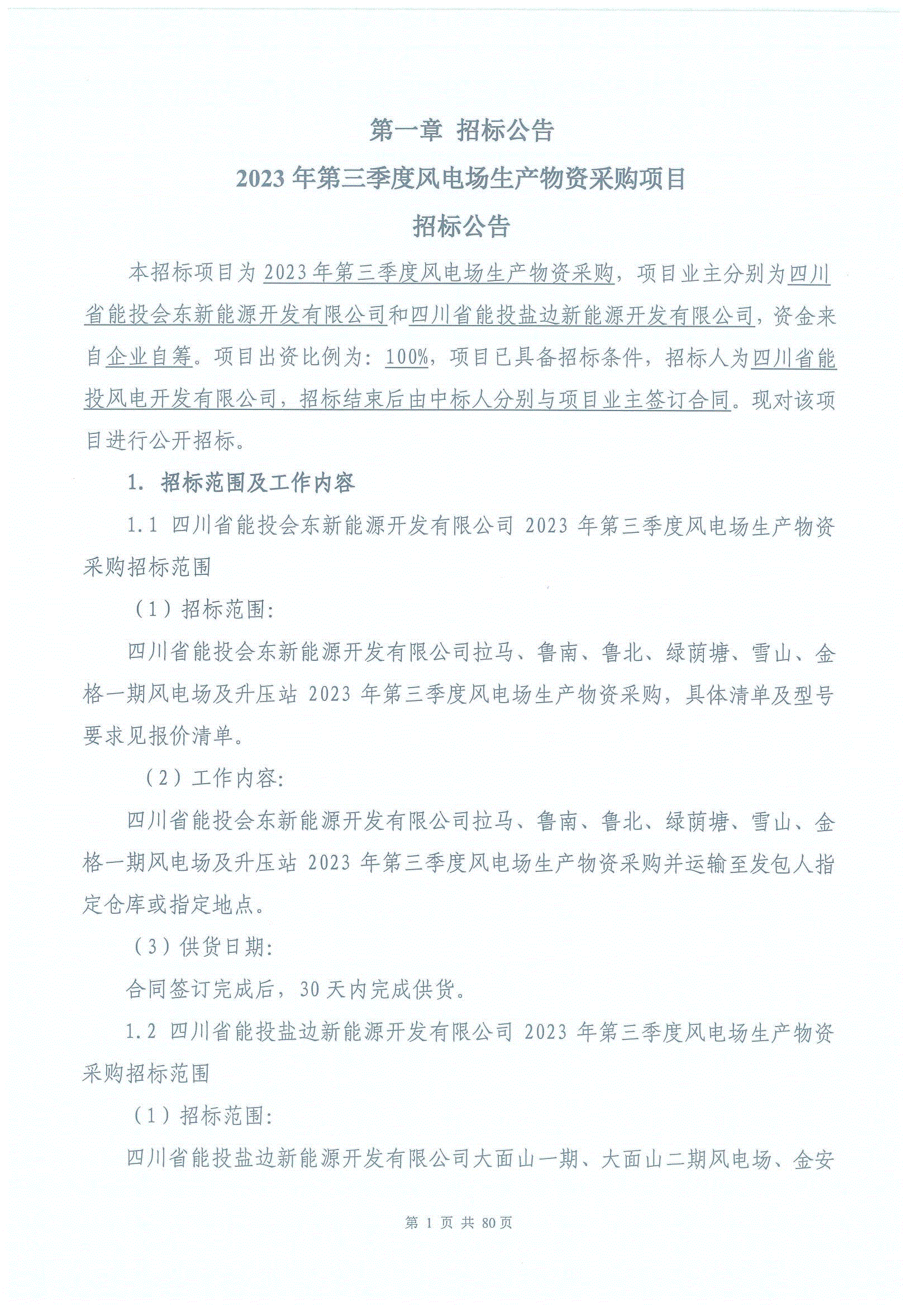 1.1 四川省能投会东新能源开发有限公司2023年第三季度风电场生产物资采购招标范围