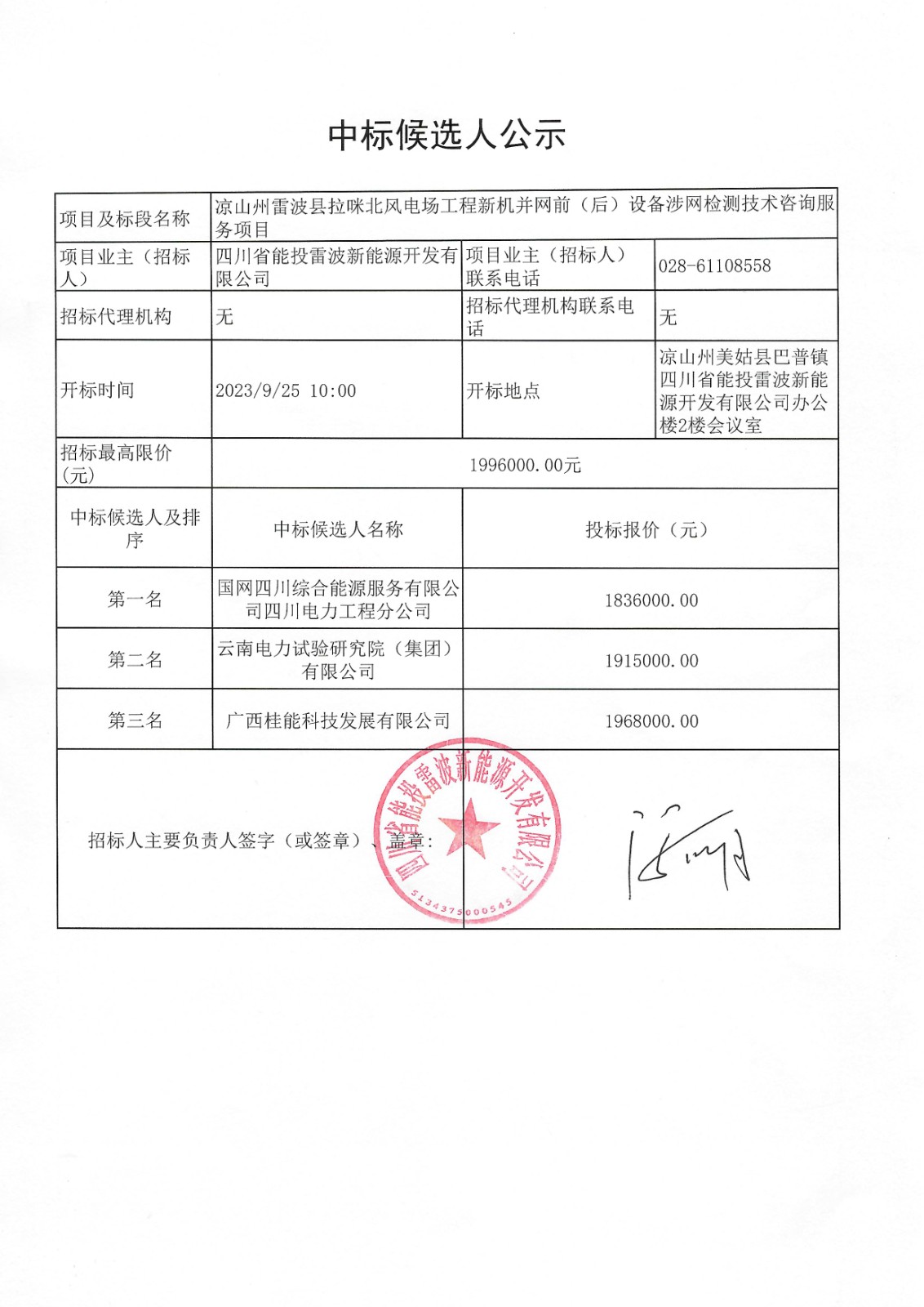 下一条:凉山州会东县小街一期风电场及送出工程、淌塘二期风电场及送出工程安全设施验收(第二次)成交候选人公示