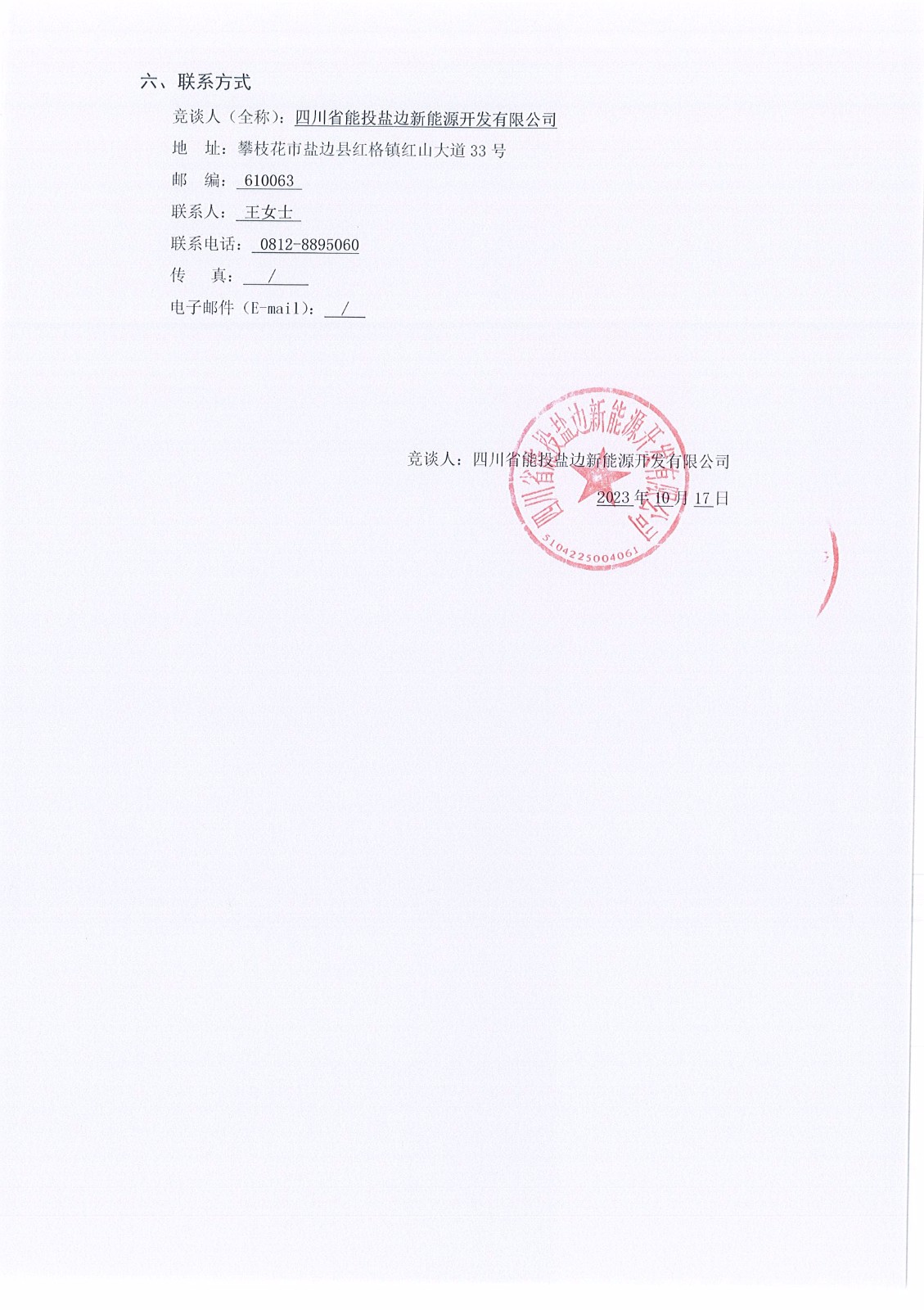 竞谈人(全称):四川省能投盐边新能源开发有限公司